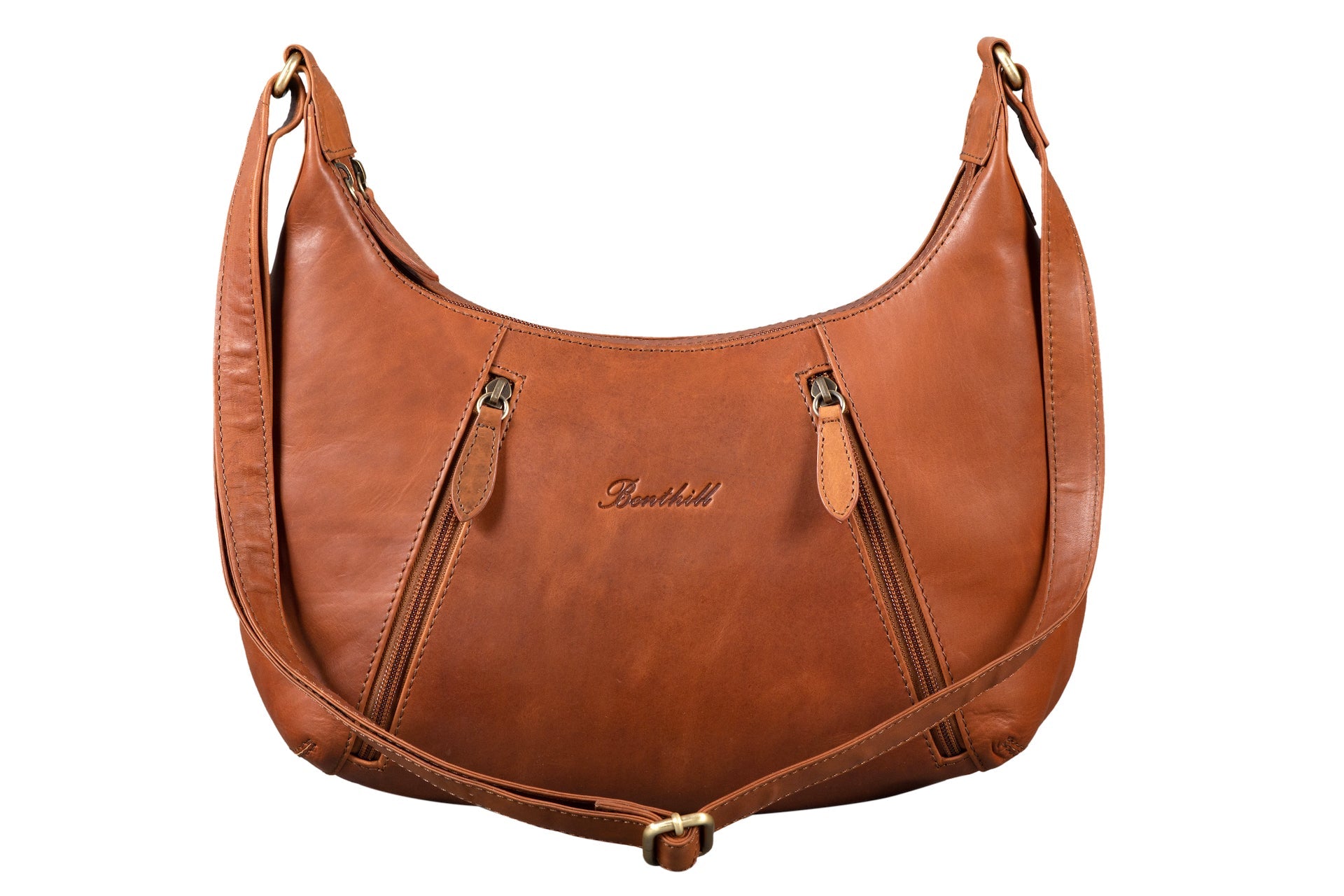 Benthill Damen Handtasche Leder - Damentasche aus Rindsleder - Umhängetasche mit Reißverschluss - Vintage Frauen Schultertasche