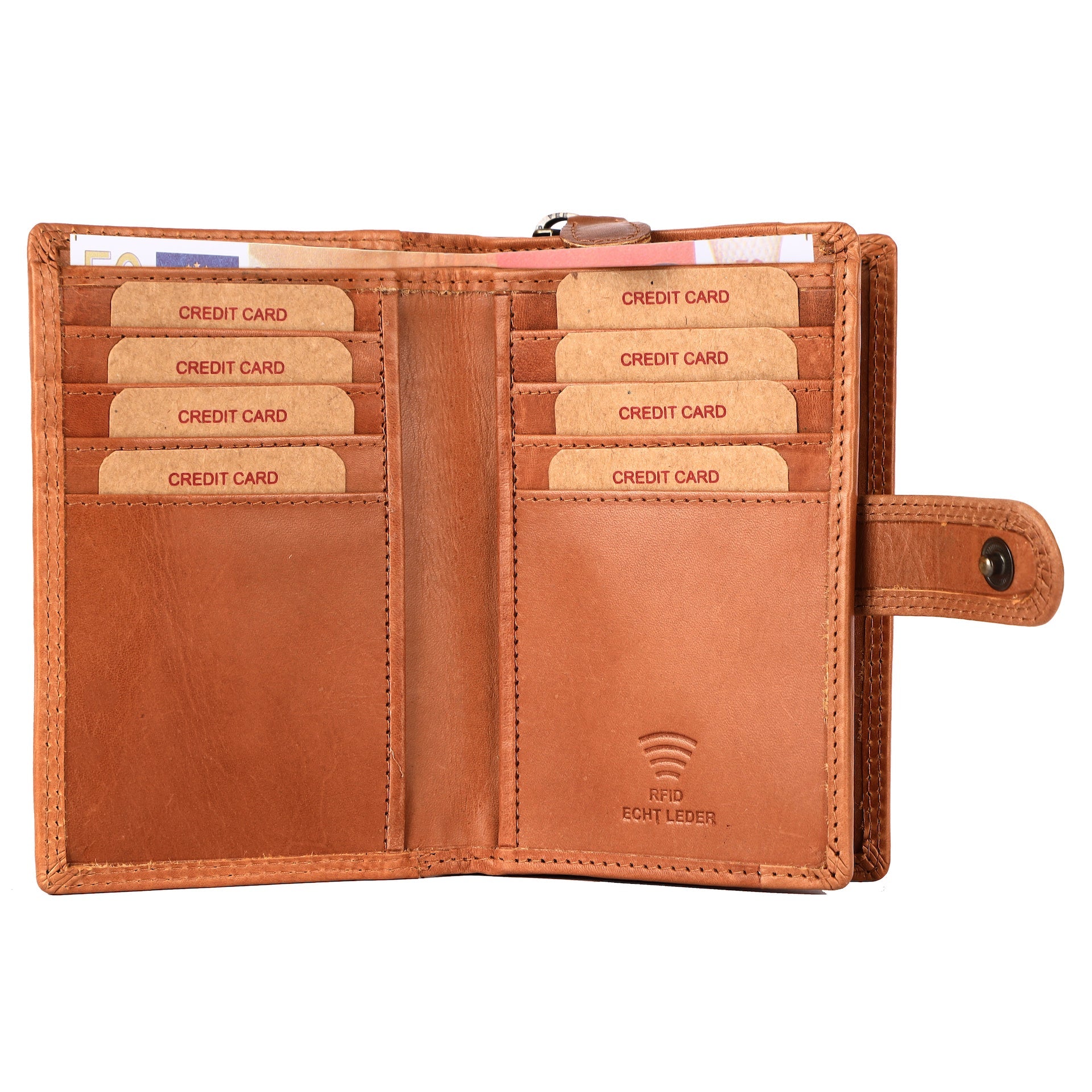 · Damen-Geldbörse - Sehr angenehmes weiches Leder, ein Tolles Material im leichten Vintage-Look. Ein echt hochwertiges Damen-Portemonnaie - durch das Langlebige Echt Leder werden Sie den unterschied fühlen. Inklusive RFID-Schutz ist die Börse sicher gegen Datenraub.