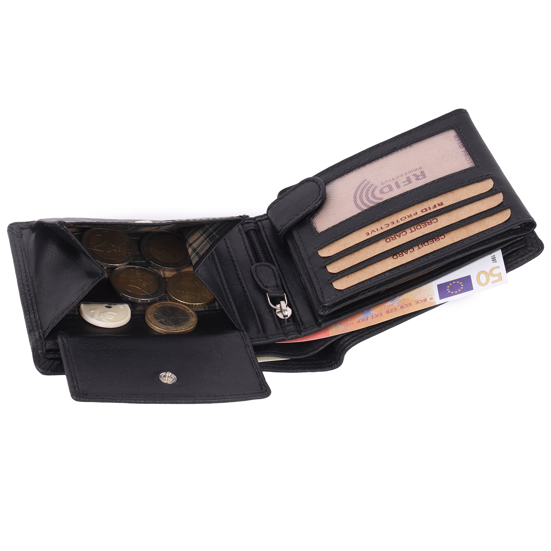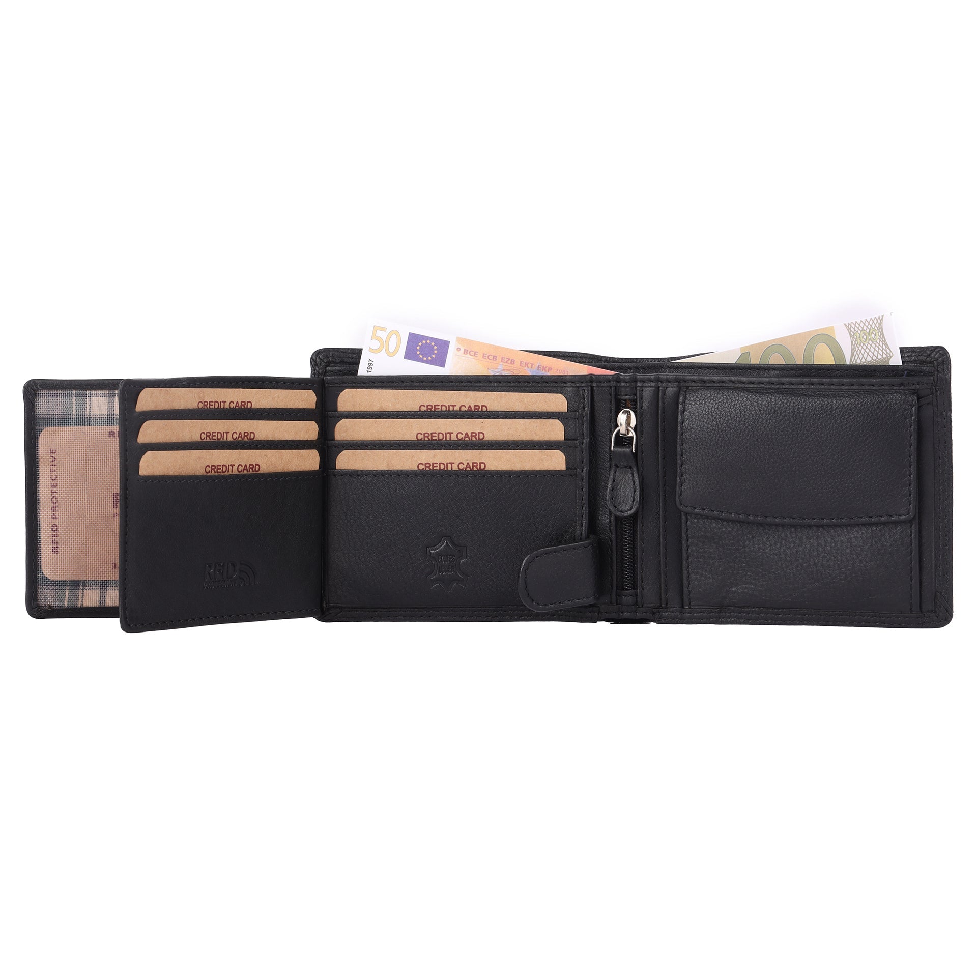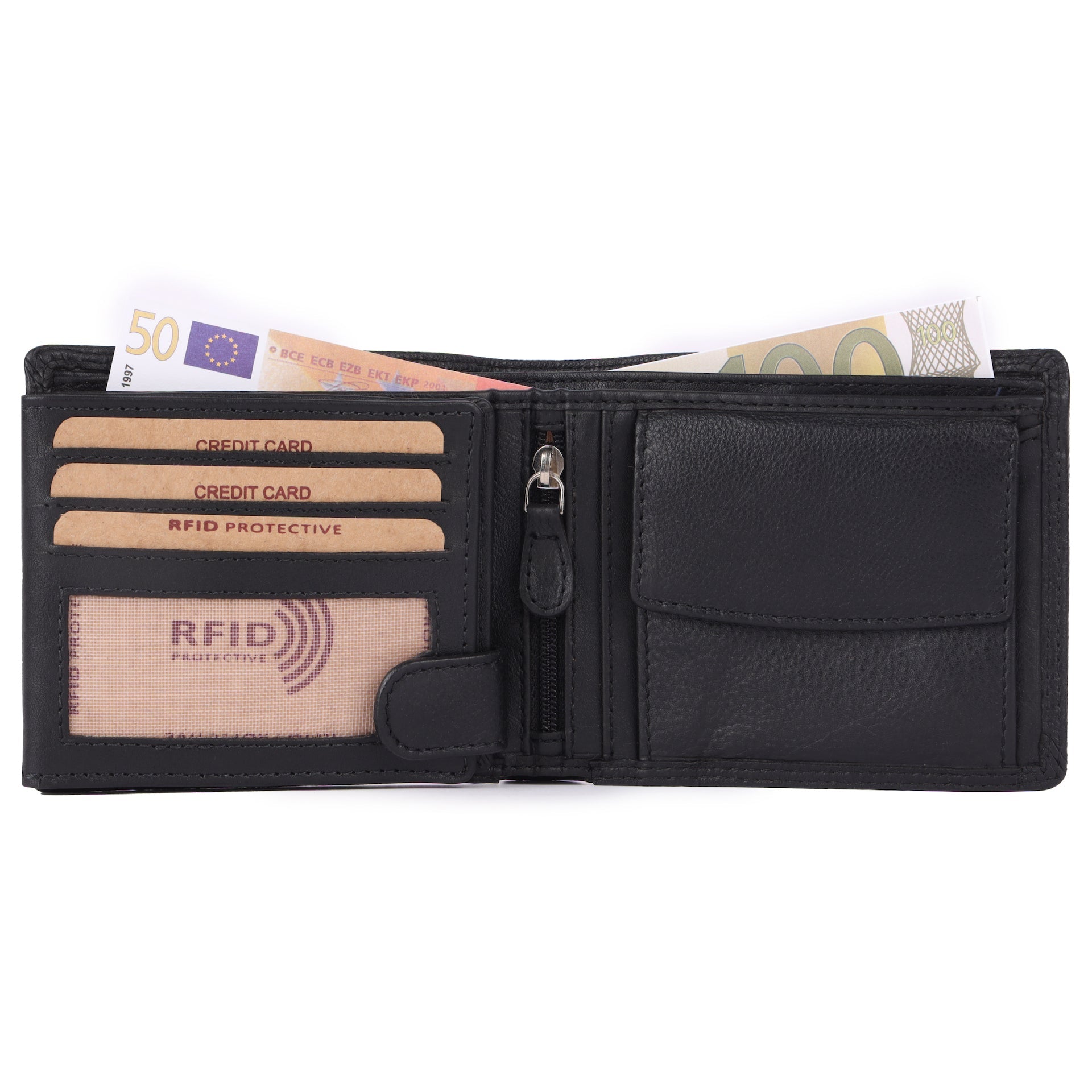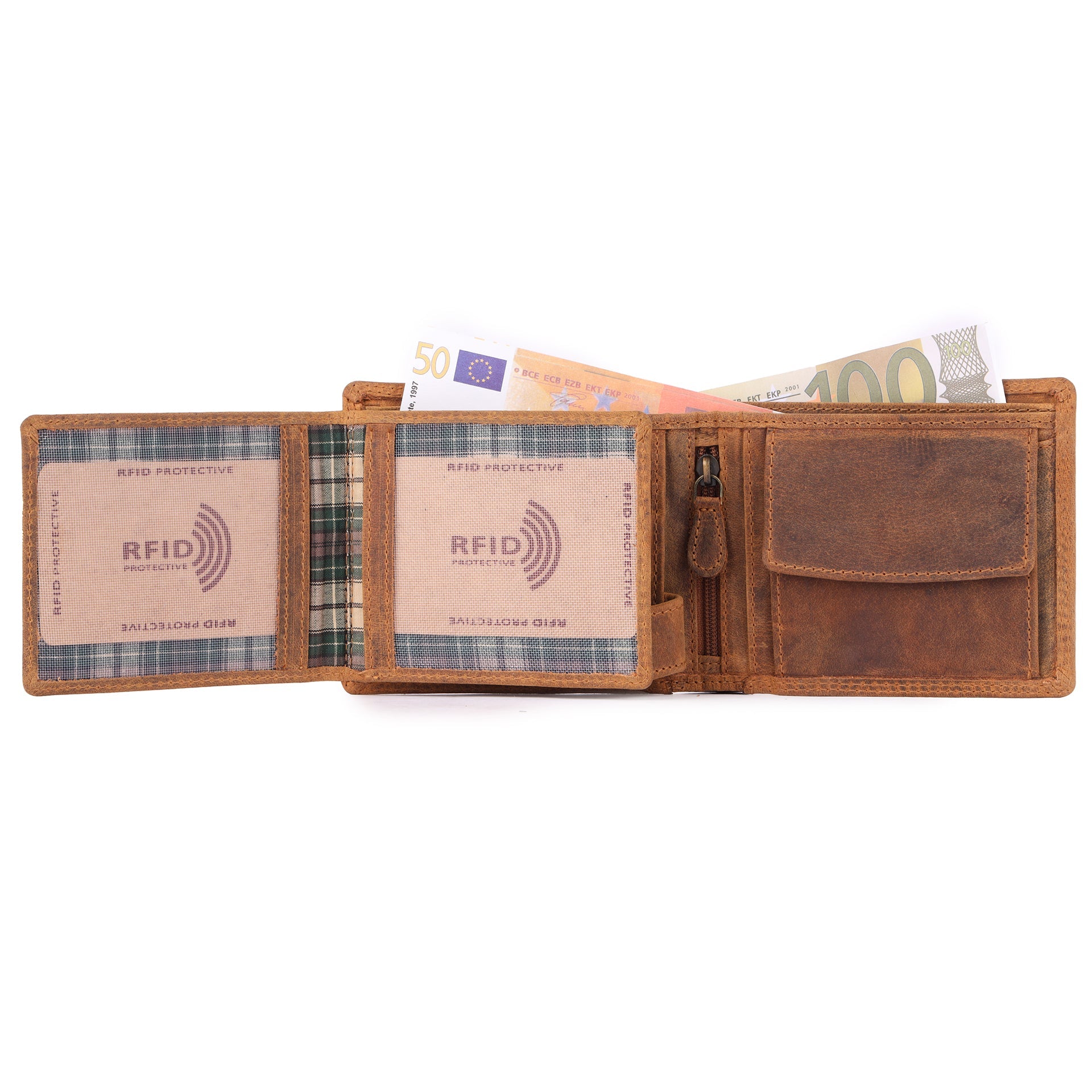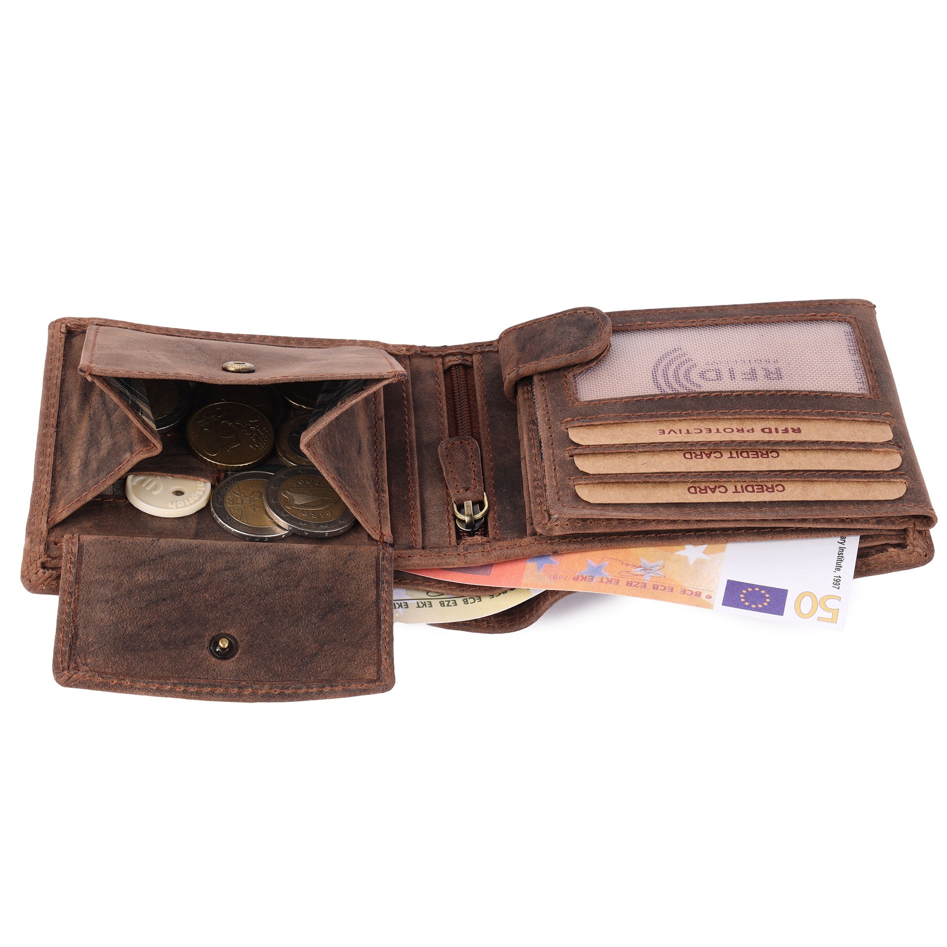 · Herren-Geldbörse - Sehr angenehmes weiches Leder, ein Tolles Material im leichten Vintage-Look. Ein echt hochwertiges Portemonnaie - durch das Langlebige Echt Leder werden Sie den unterschied fühlen. Inklusive RFID-Schutz ist die Börse sicher gegen Datenraub.