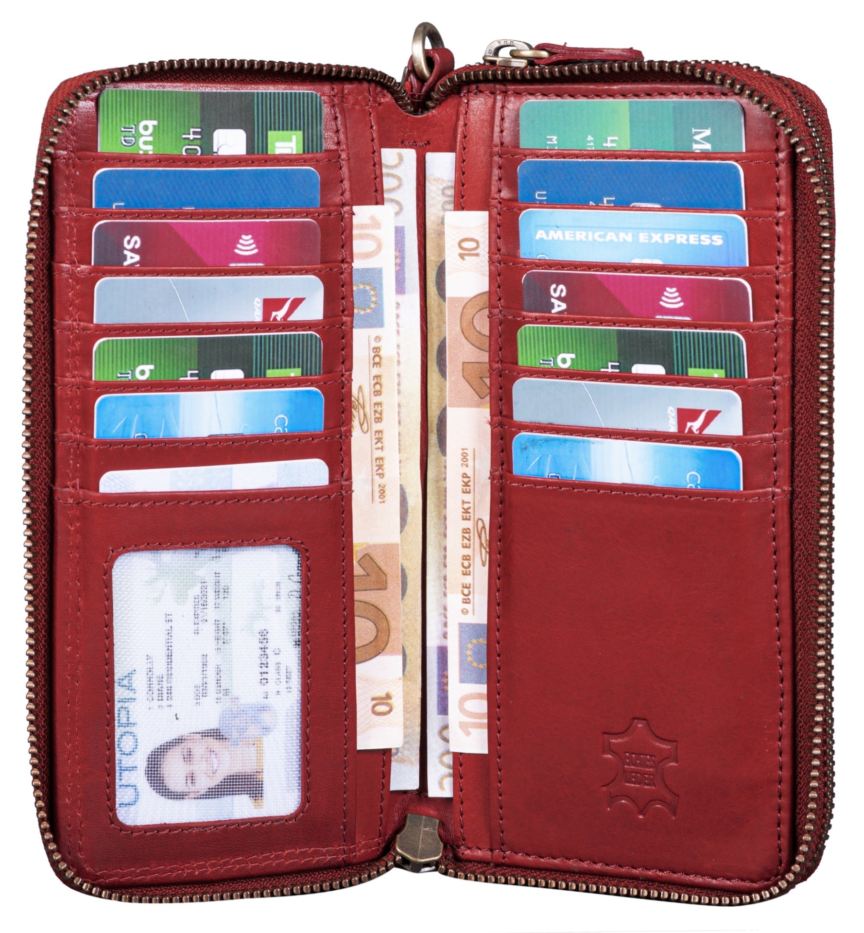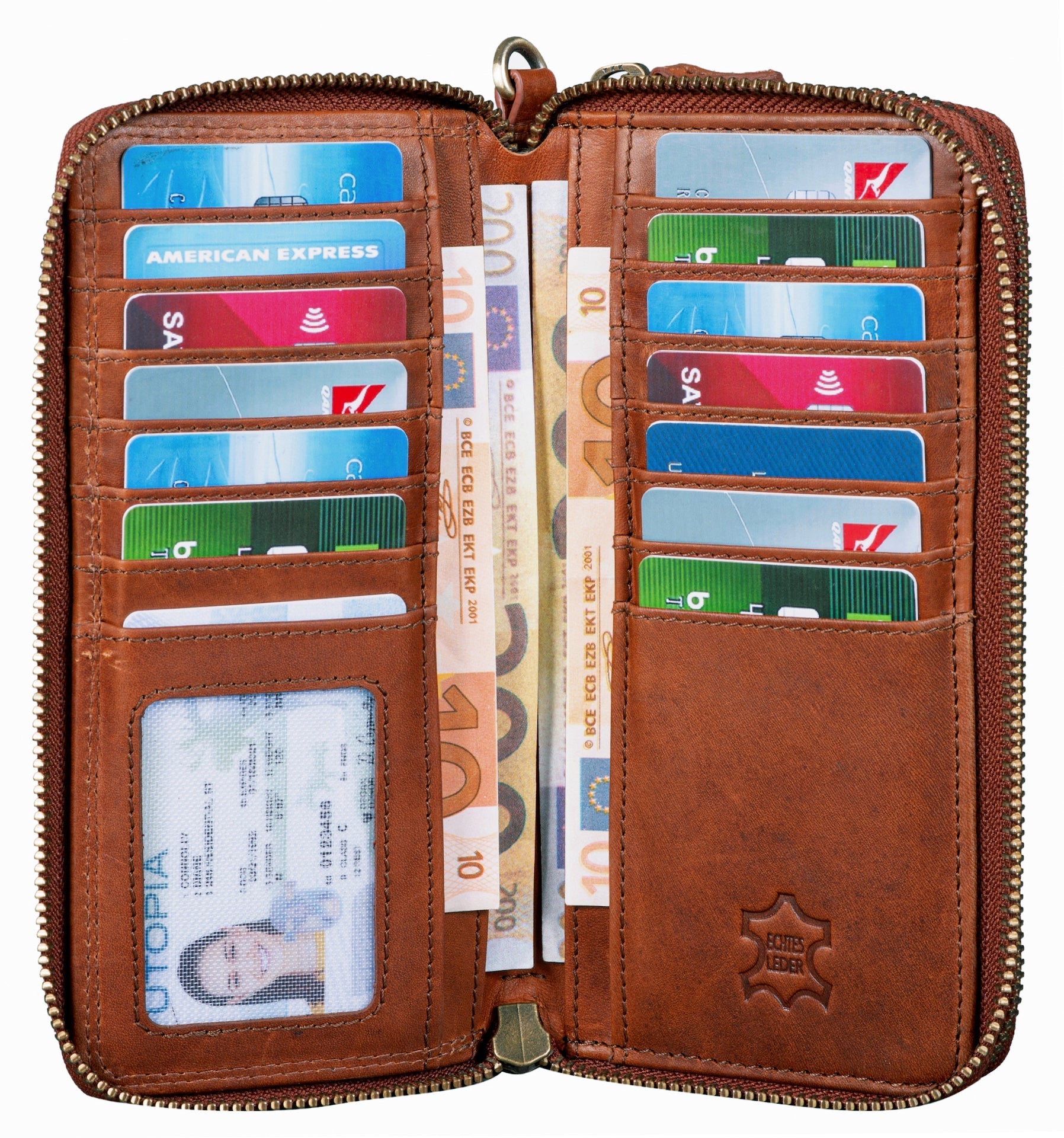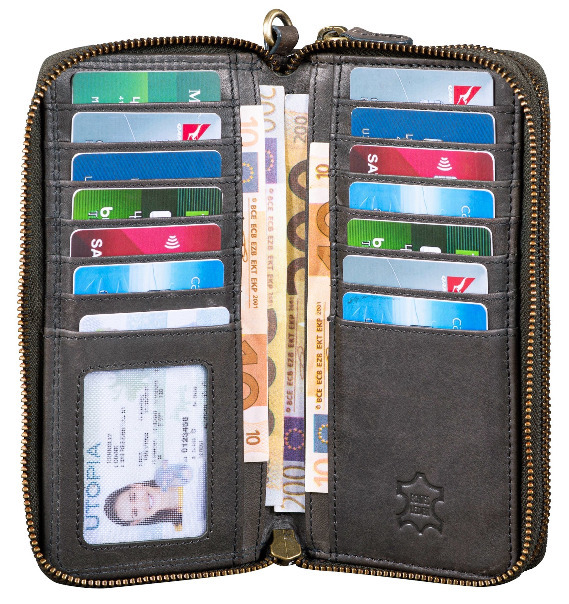 · Damen-Geldbörse - Sehr angenehmes weiches Leder, ein Tolles Material im leichten Vintage-Look. Ein echt hochwertiges Portemonnaie - durch das Langlebige Echt Leder werden Sie den unterschied fühlen. Inklusive RFID-Schutz ist die Börse sicher gegen Datenraub.