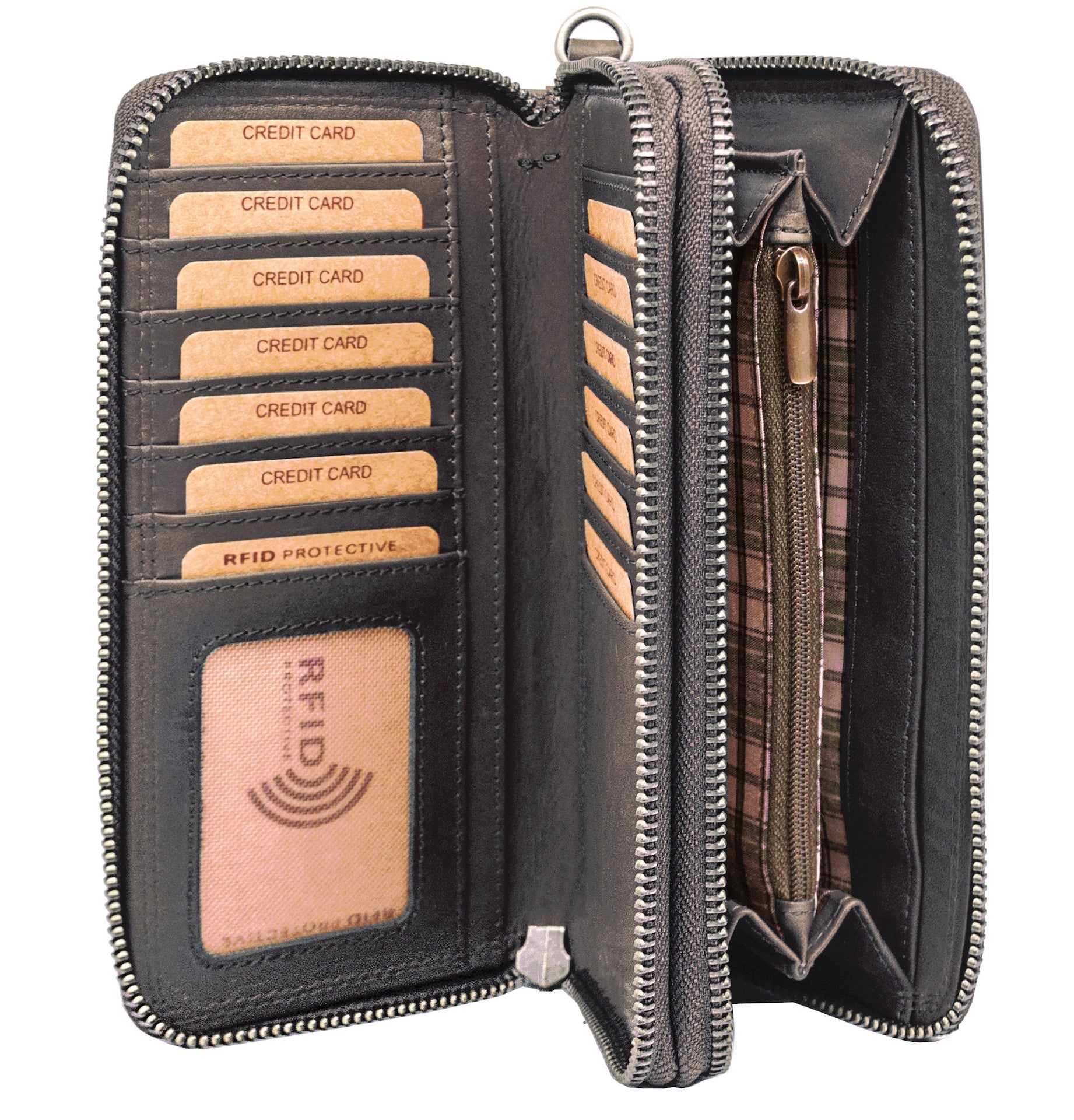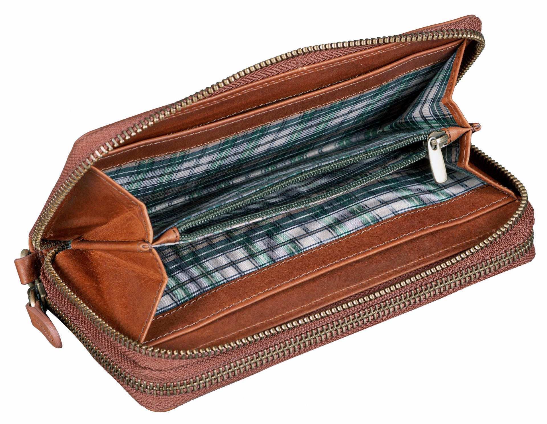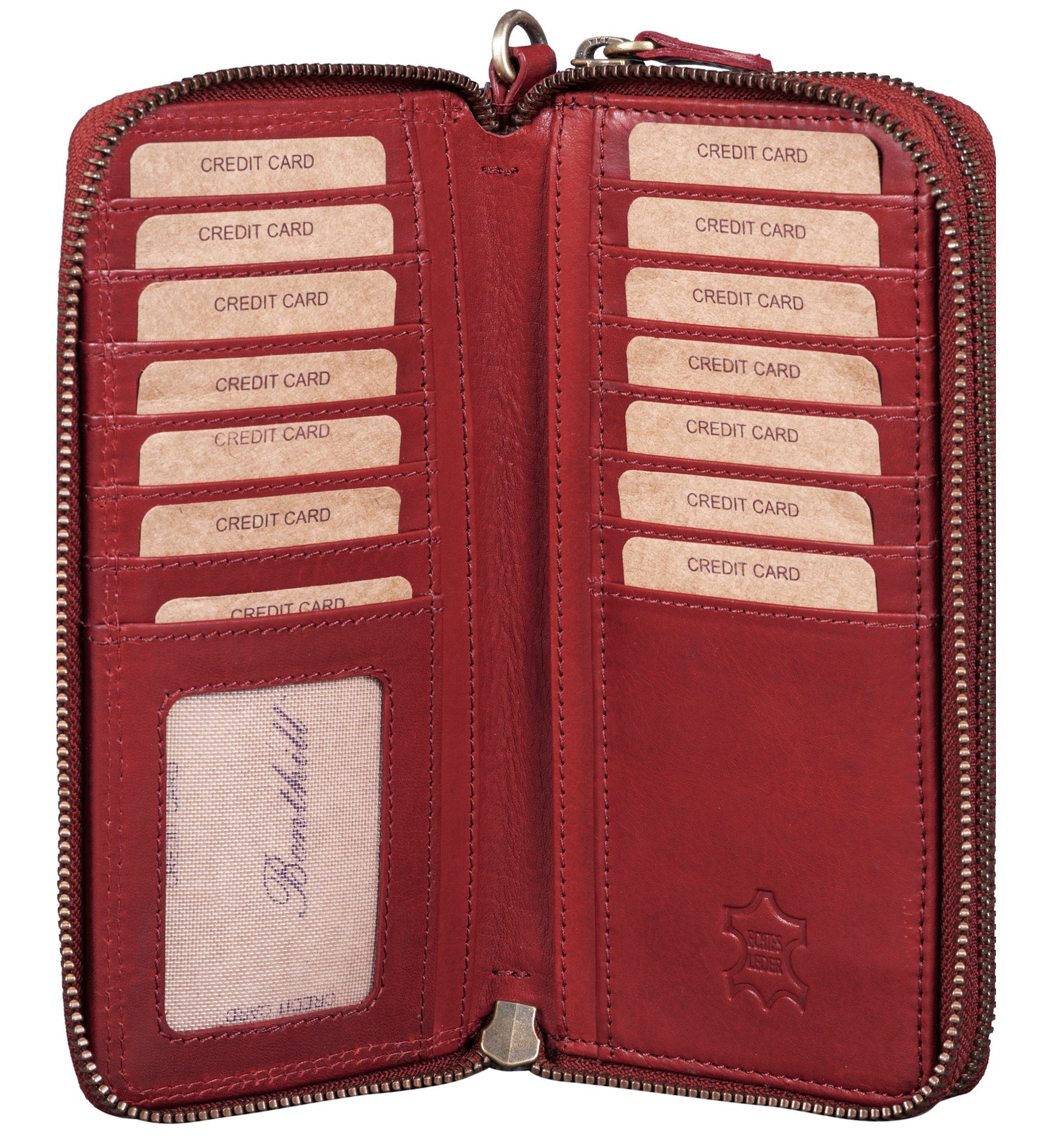 · Damen-Geldbörse - Sehr angenehmes weiches Leder, ein Tolles Material im leichten Vintage-Look. Ein echt hochwertiges Portemonnaie - durch das Langlebige Echt Leder werden Sie den unterschied fühlen. Inklusive RFID-Schutz ist die Börse sicher gegen Datenraub.