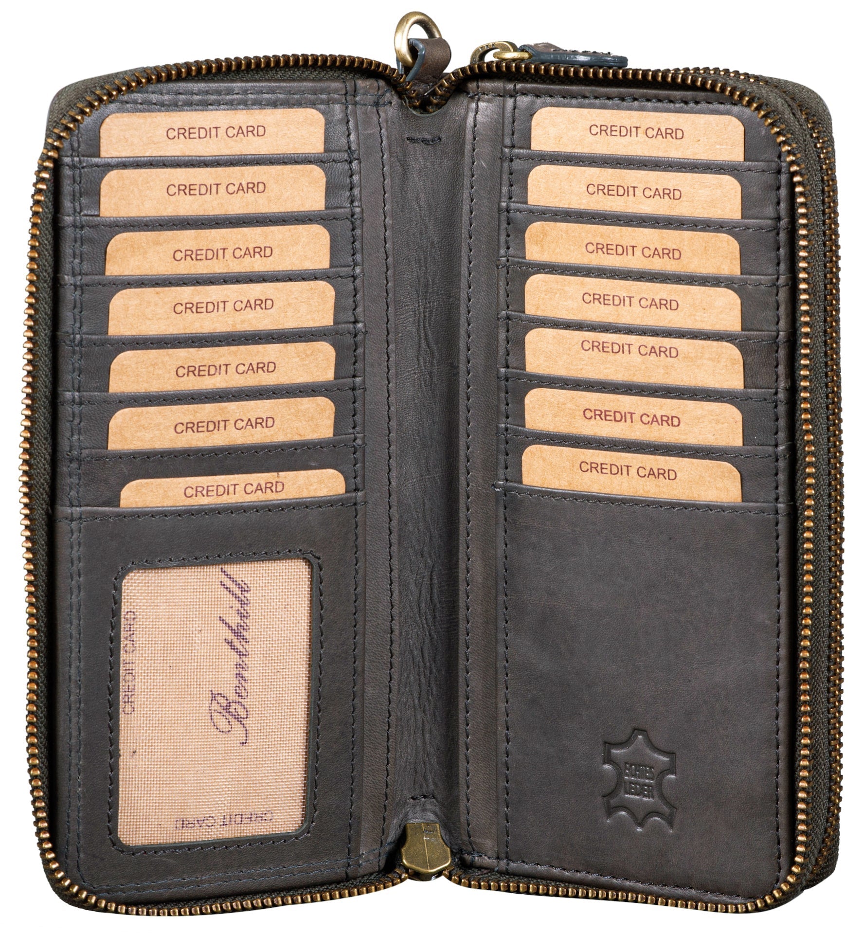 Benthill Geldbörse Groß Leder | Grosses Portemmonnaie mit RFID Schutz | Hochwertiges Rindsleder Portmonee Gross mit vielen Kartenfächern inkl. Geschenkbox