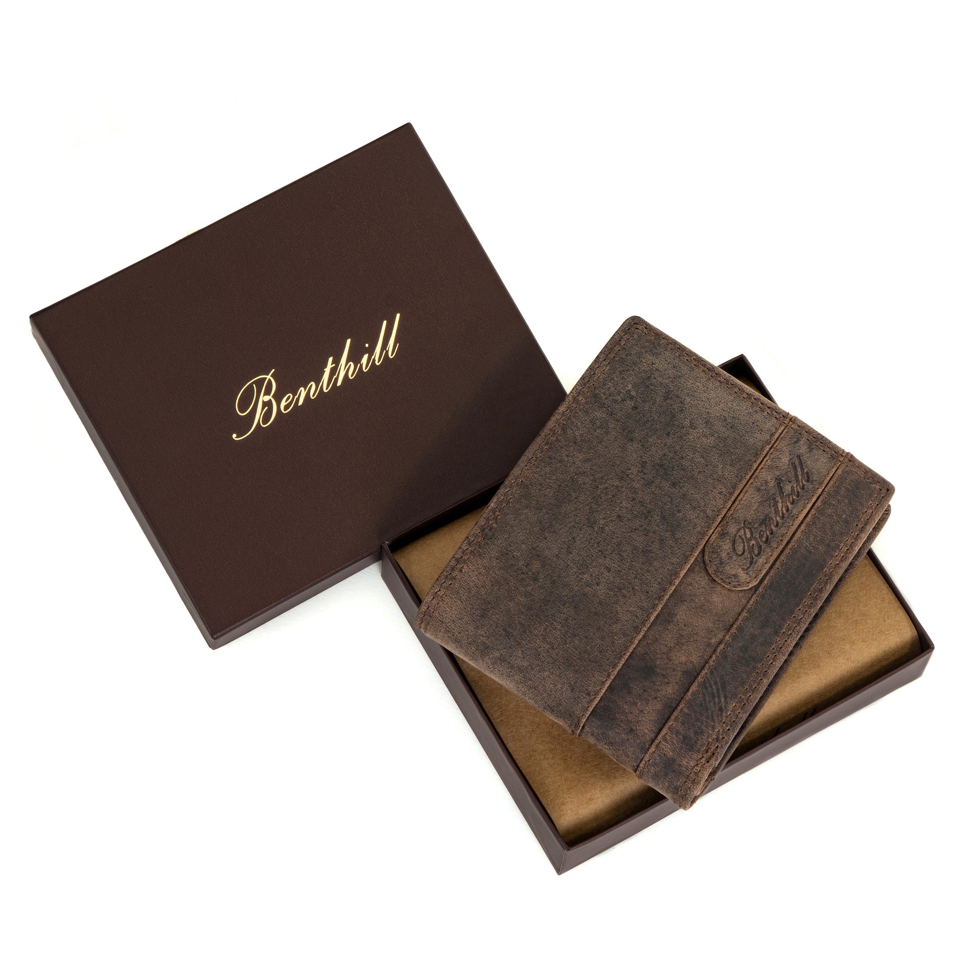 Benthill Geldbörse Herren Leder | Geldbeutel mit RFID-Schutz | Portemonnaie aus hochwertigem Rindsleder | Männer Brieftasche inkl. Geschenkbox