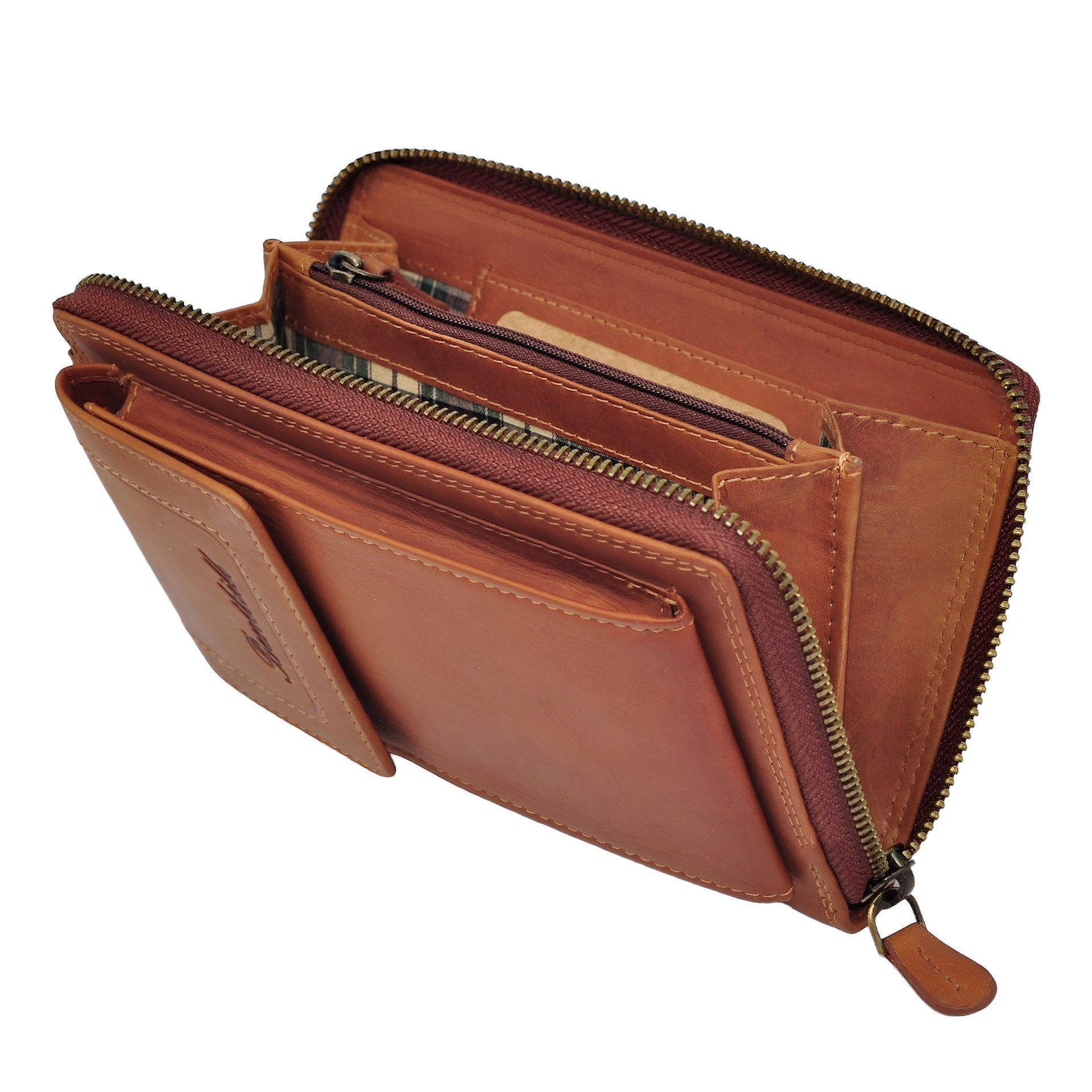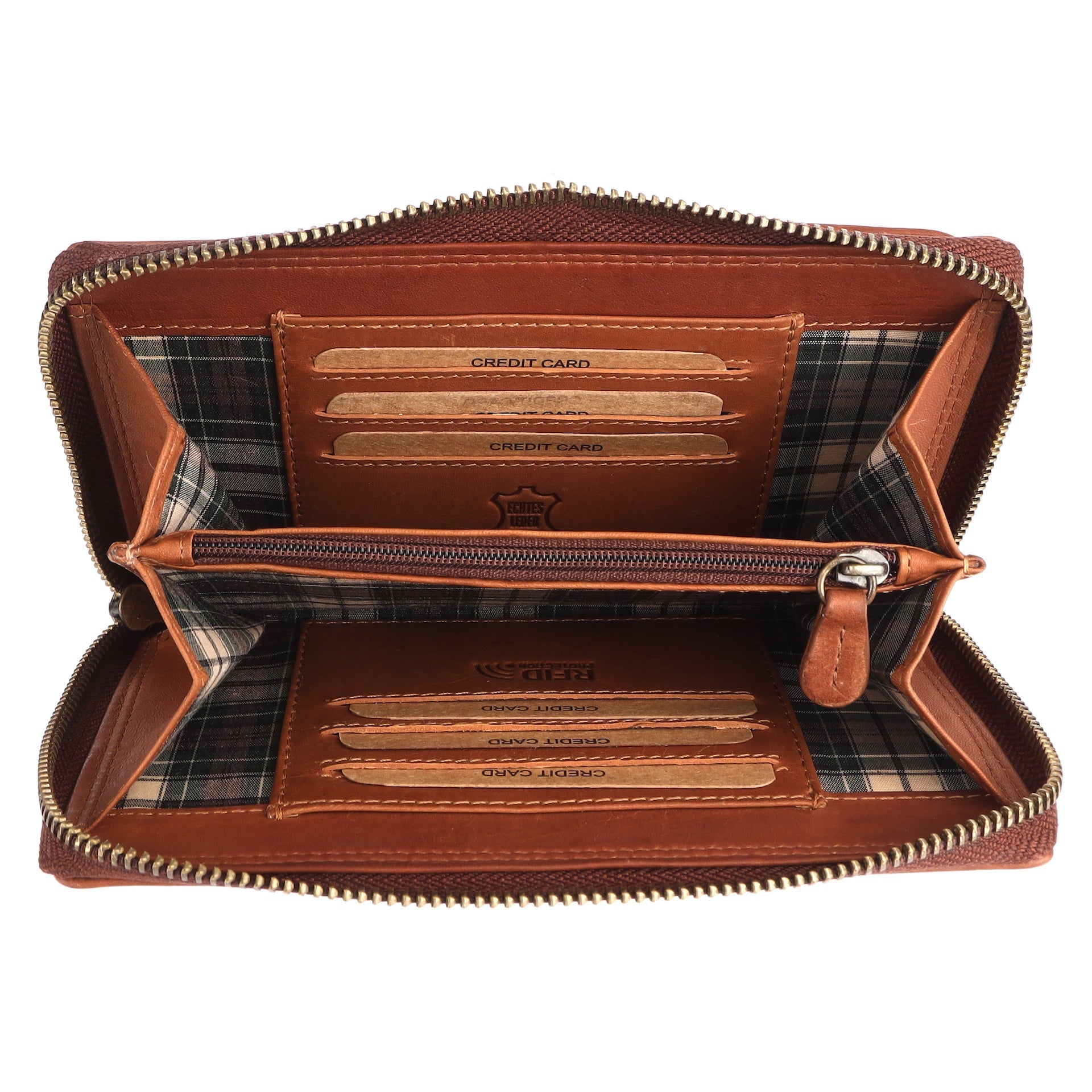 Benthill Damen Handy Umhängetasche Leder - RFID Portemonnaie aus echtem Rindsleder - Frauen Vintage Leder Geldbörse - Handtasche - Schultertasche