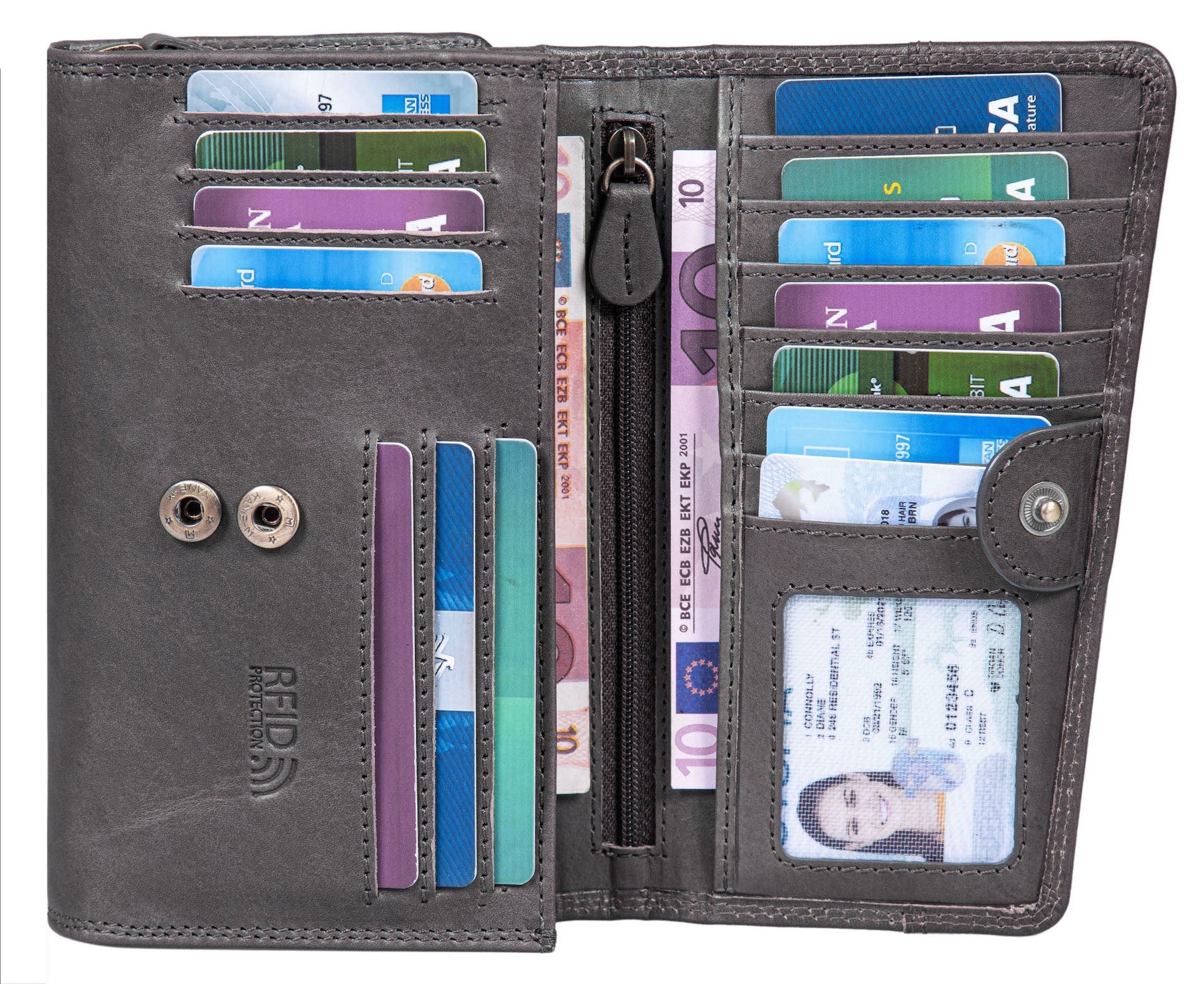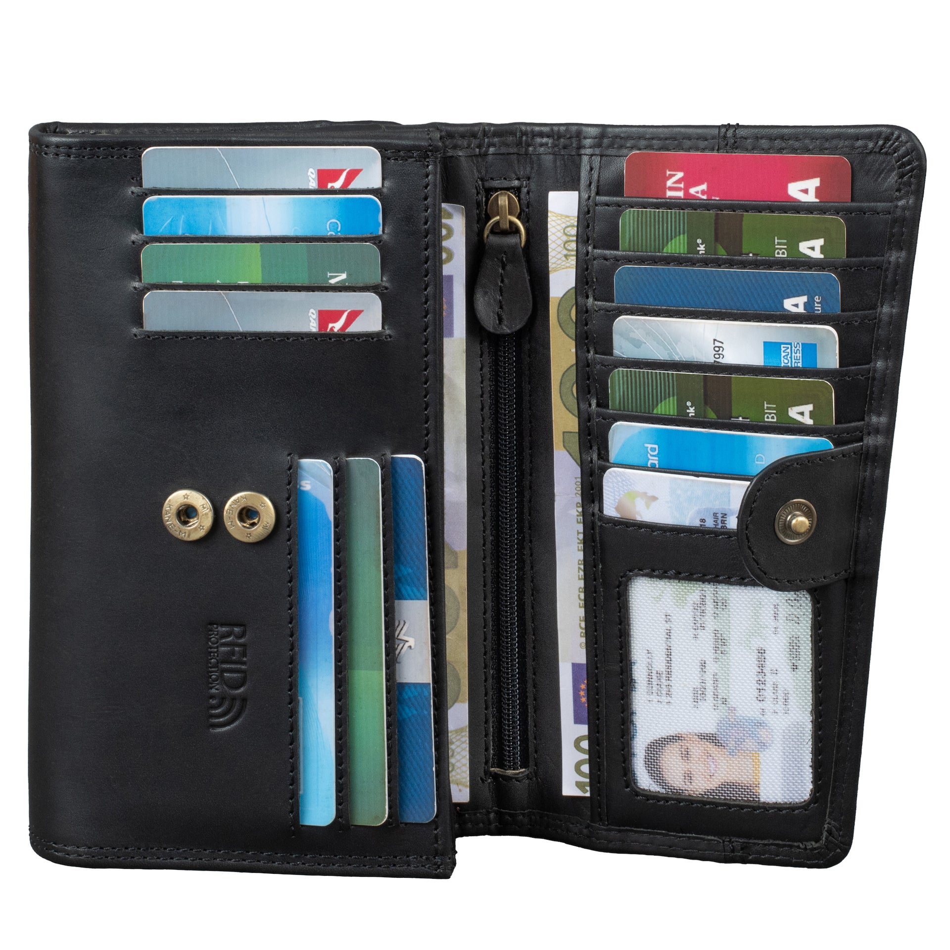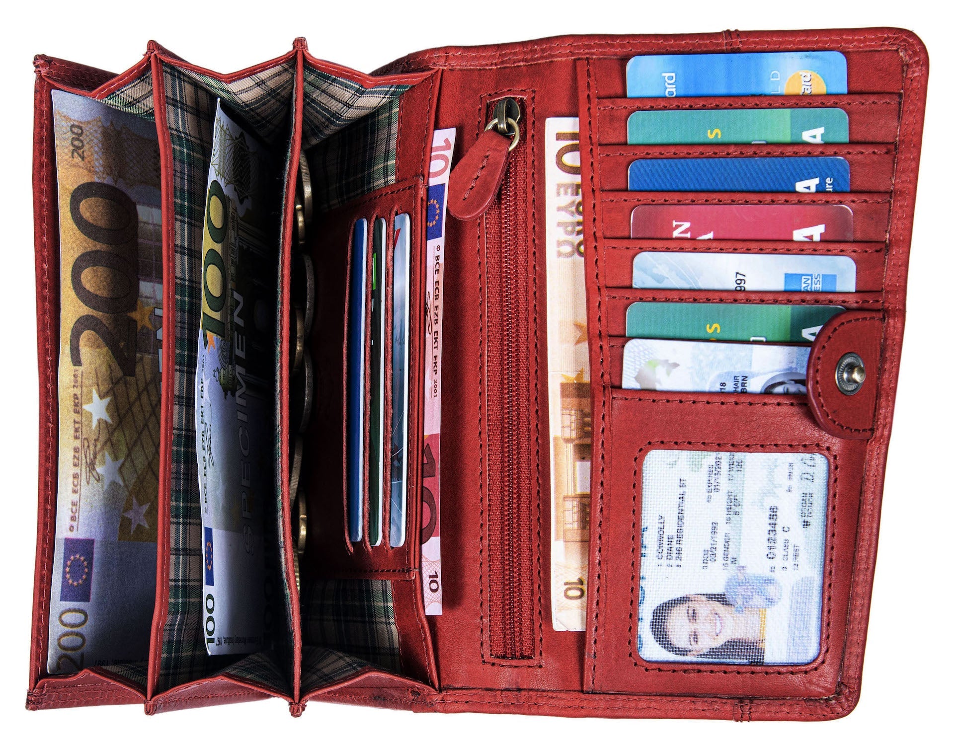 · Platzwunder - Dieses große Echt-Leder Portmonee bietet viel Platz für Ihre Kreditkarten, Fächer für Geldscheine. Dieser tägliche Begleiter stellt genügend Stauraum zur Verfügung durch die vielen Kartenfächer, den Geldscheinfächer und dem Kleingeldfach.