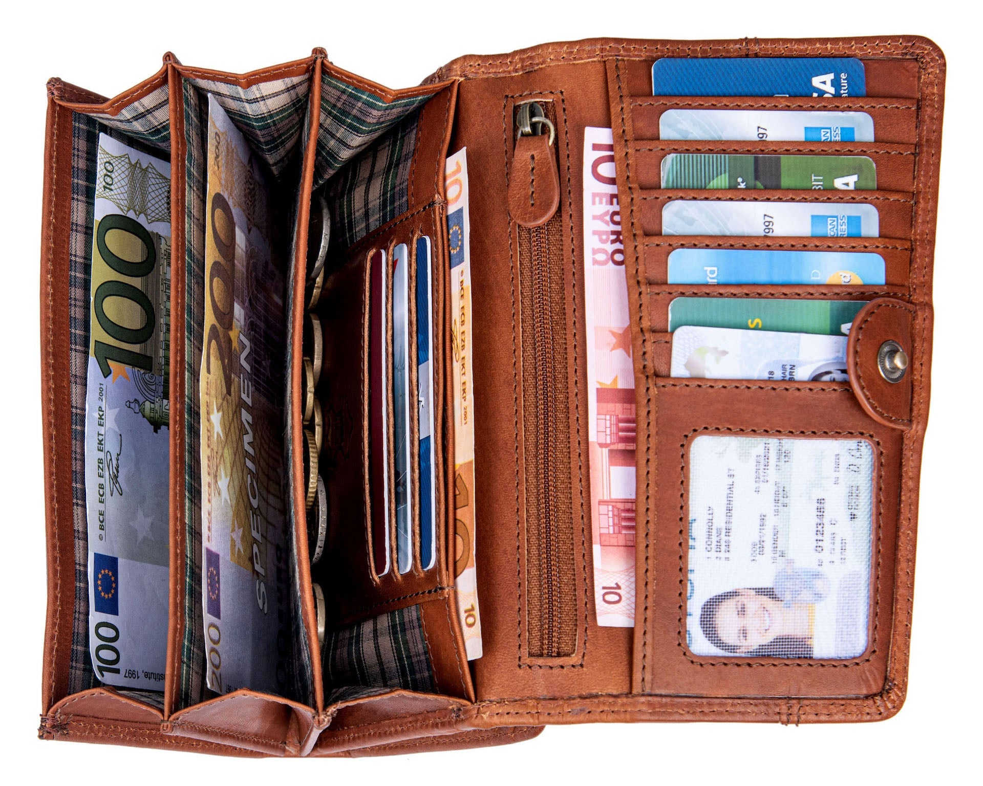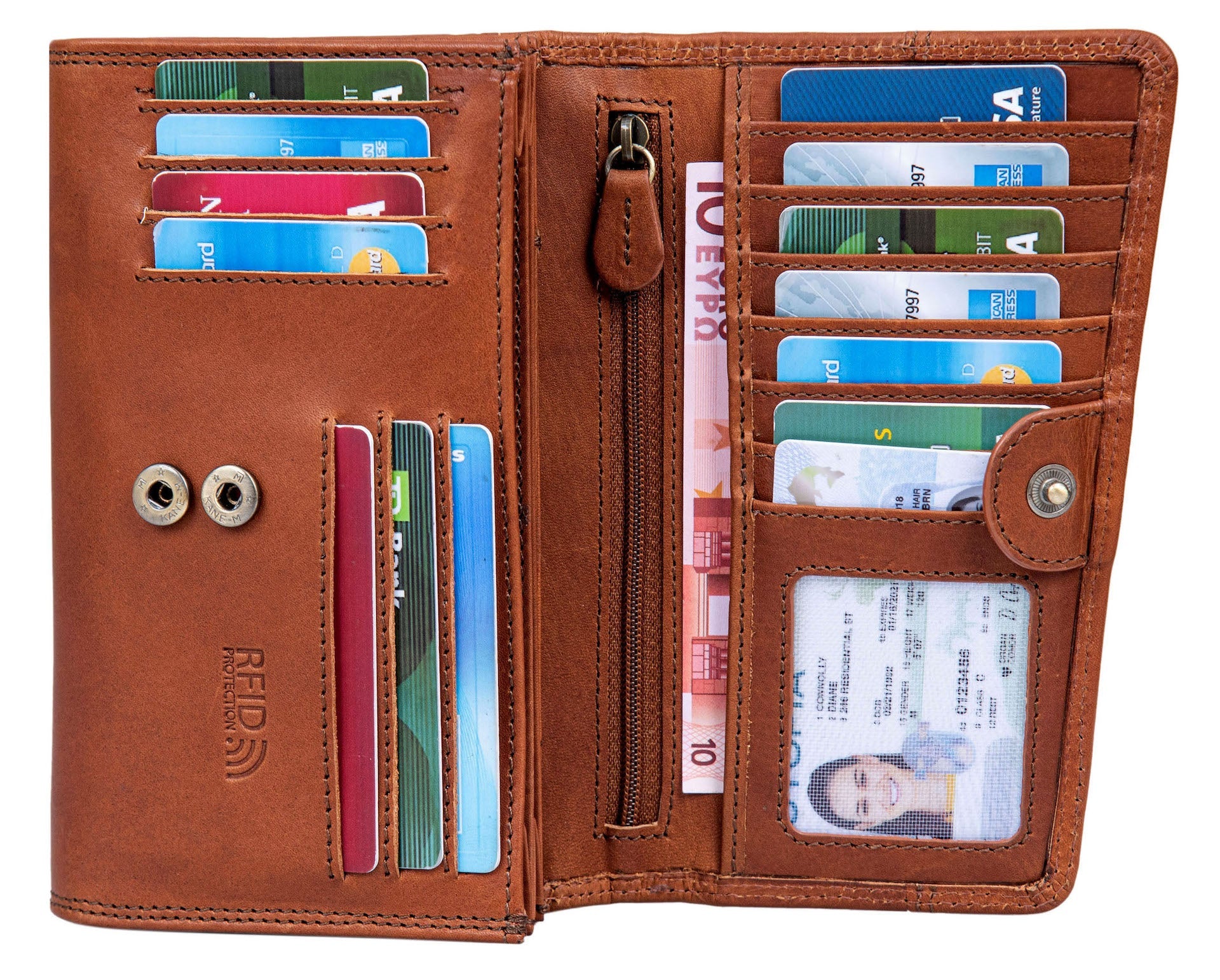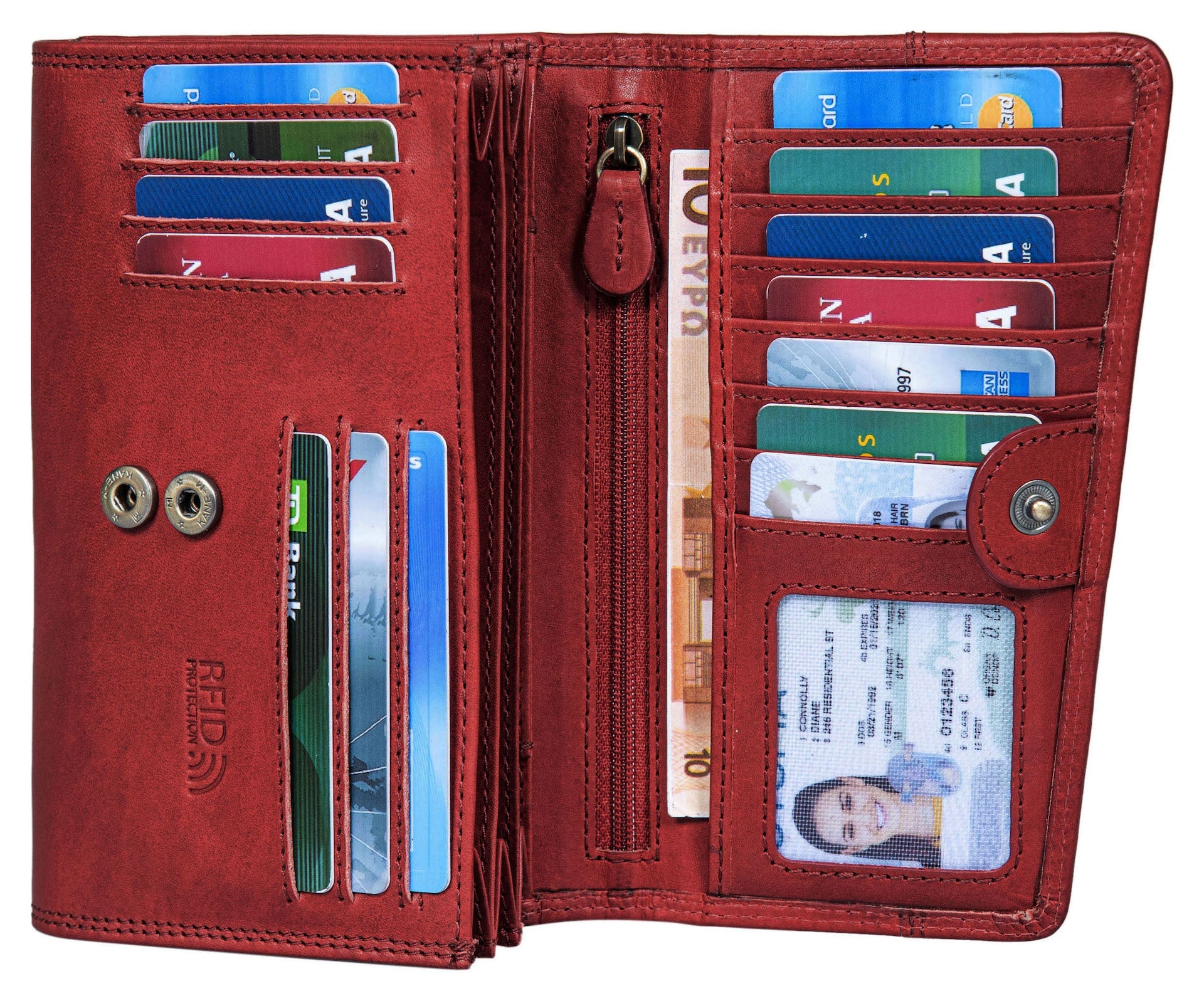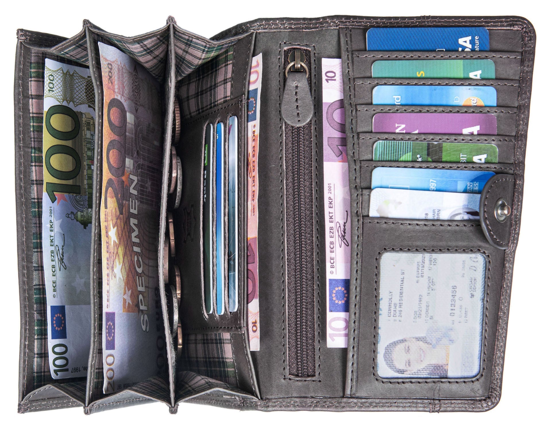· Platzwunder - Dieses große Echt-Leder Portmonee bietet viel Platz für Ihre Kreditkarten, Fächer für Geldscheine. Dieser tägliche Begleiter stellt genügend Stauraum zur Verfügung durch die vielen Kartenfächer, den Geldscheinfächer und dem Kleingeldfach.