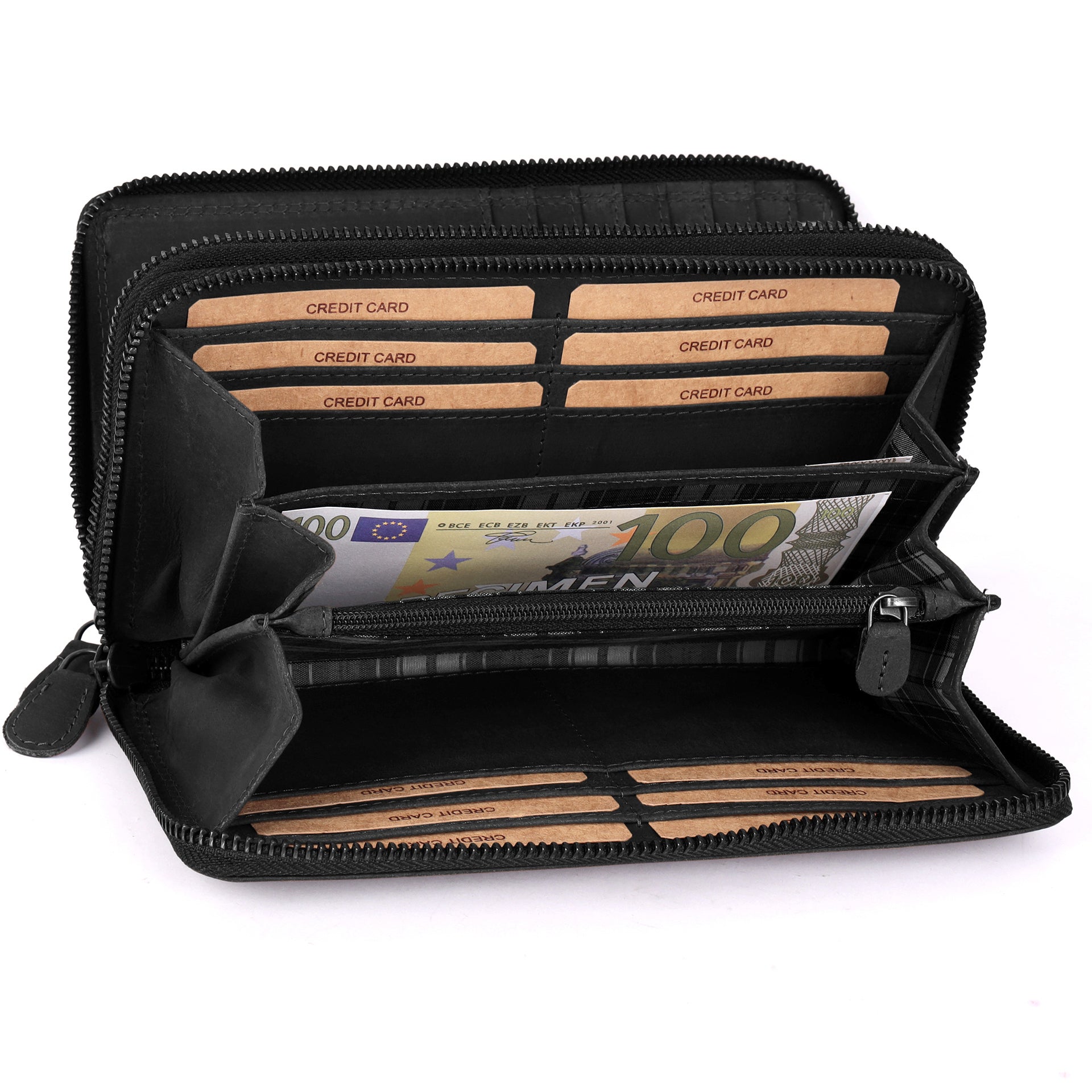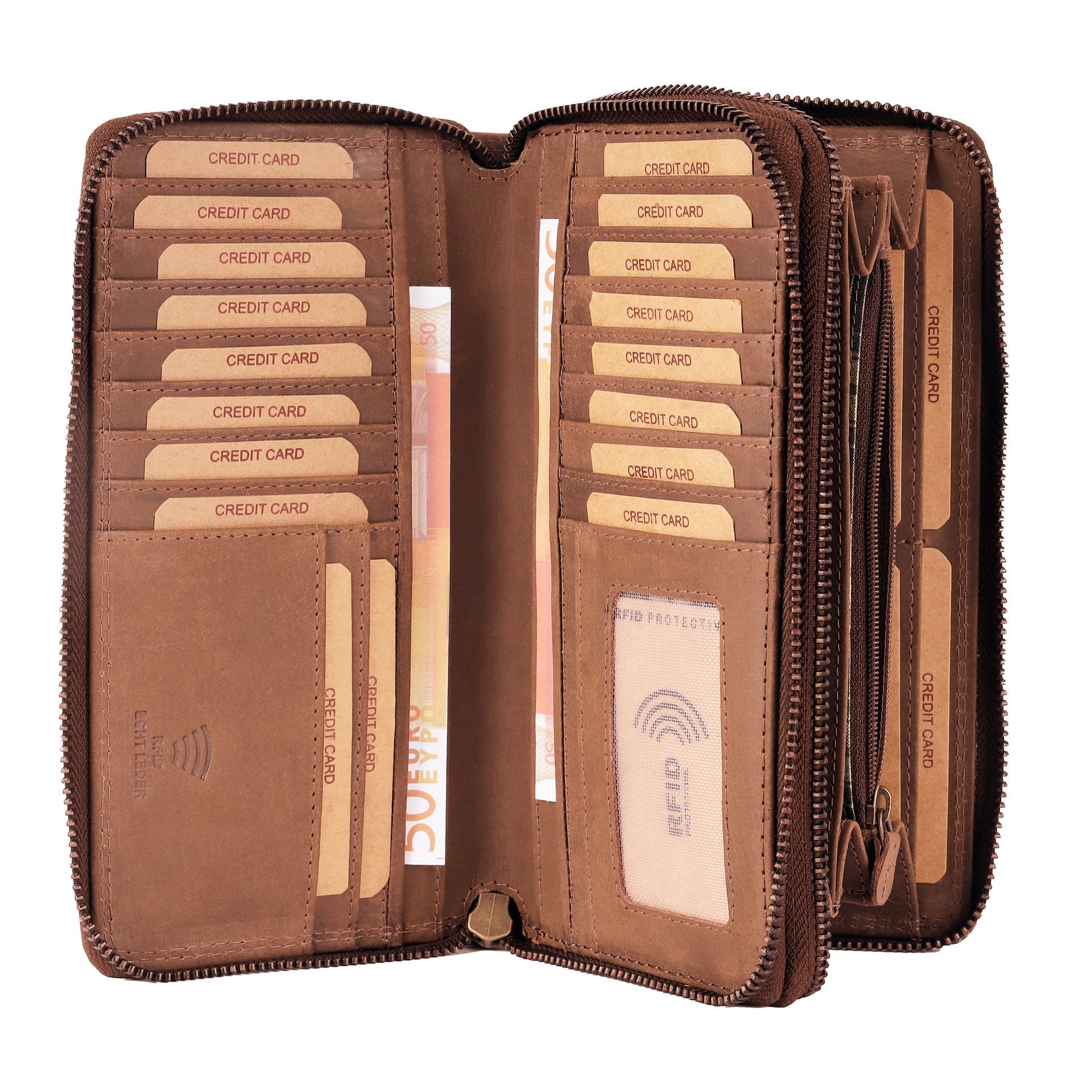Platzwunder - Dieses große Echt-Leder Portmonee bietet viel Platz für Ihre Kreditkarten, Fächer für Geldscheine. Dieser tägliche Begleiter stellt genügend Stauraum zur Verfügung durch die vielen Kartenfächer, den Geldscheinfächer und dem Kleingeldfach.