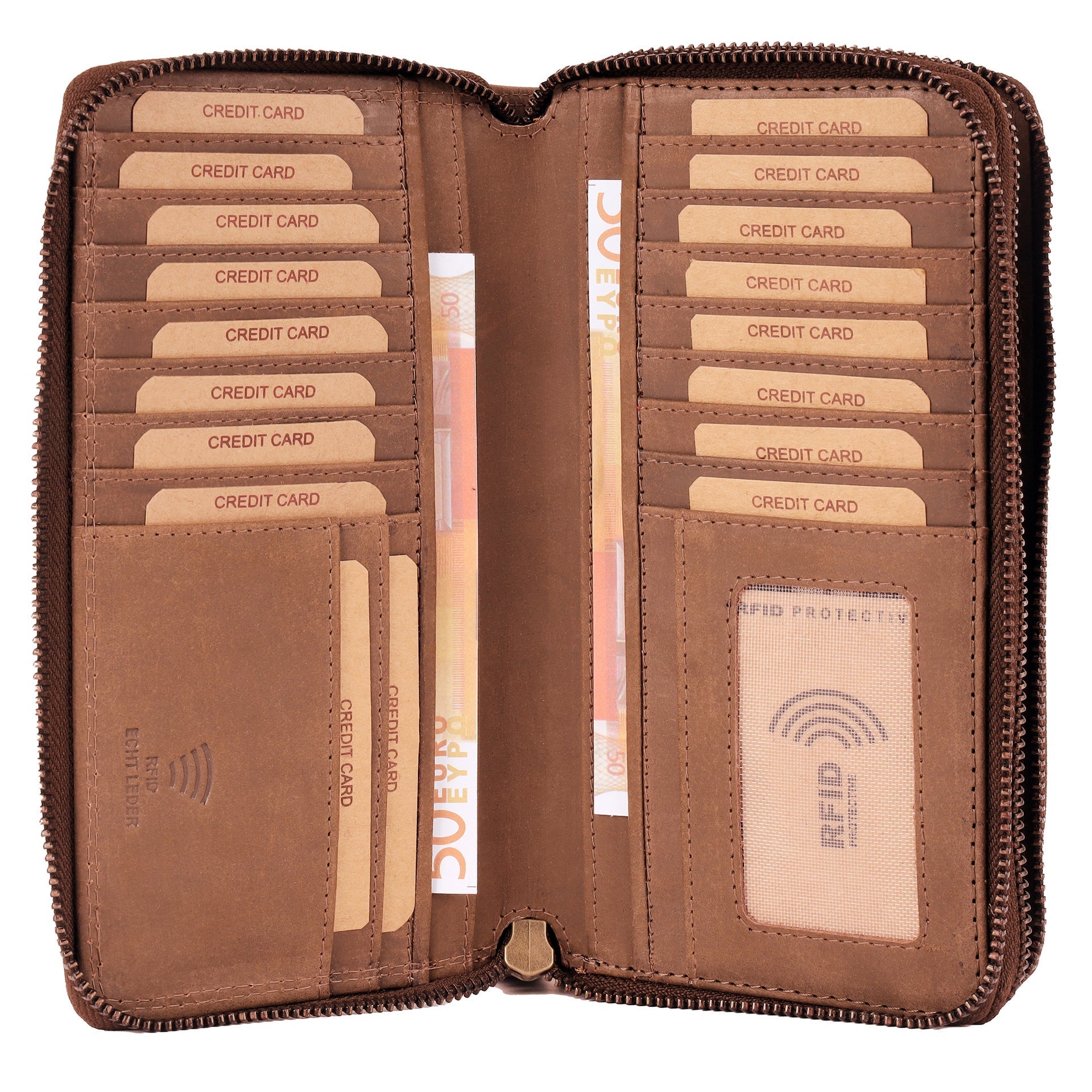 · Damen-Geldbörse - Sehr angenehmes weiches Leder, ein Tolles Material im leichten Vintage-Look. Ein echt hochwertiges Portemonnaie - durch das Langlebige Echt Leder werden Sie den unterschied fühlen. Inklusive RFID-Schutz ist die Börse sicher gegen Datenraub.