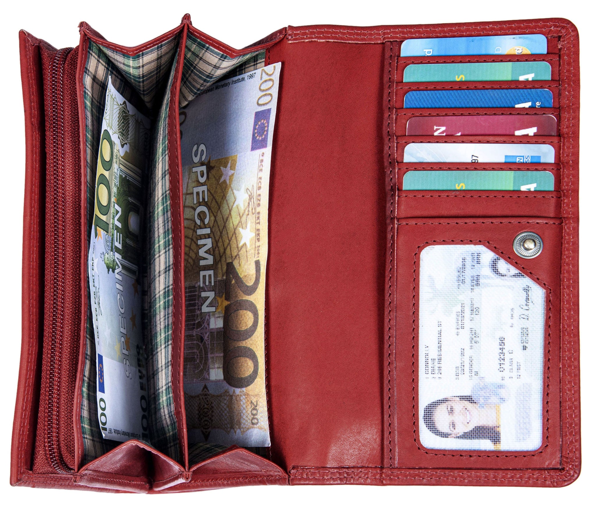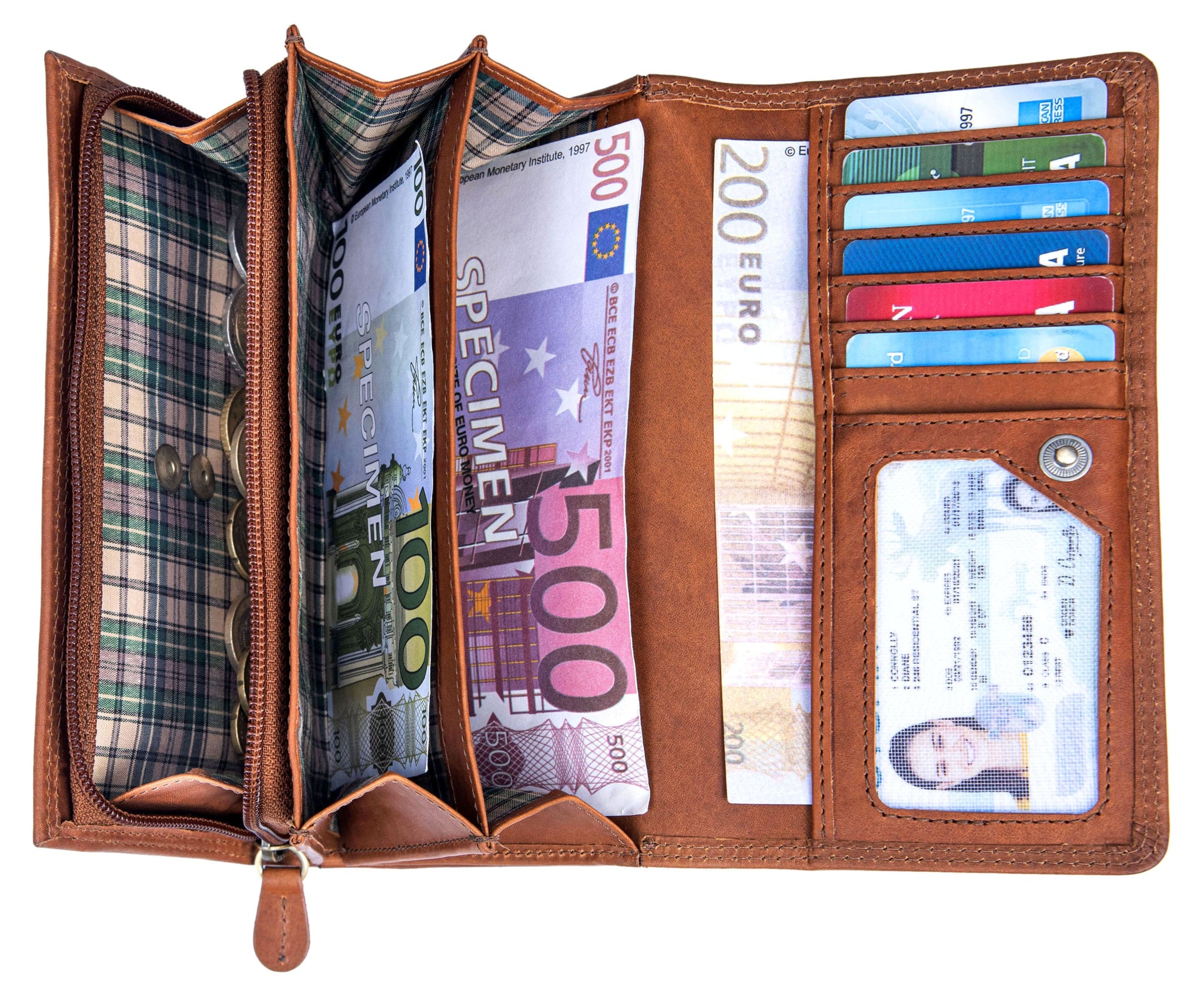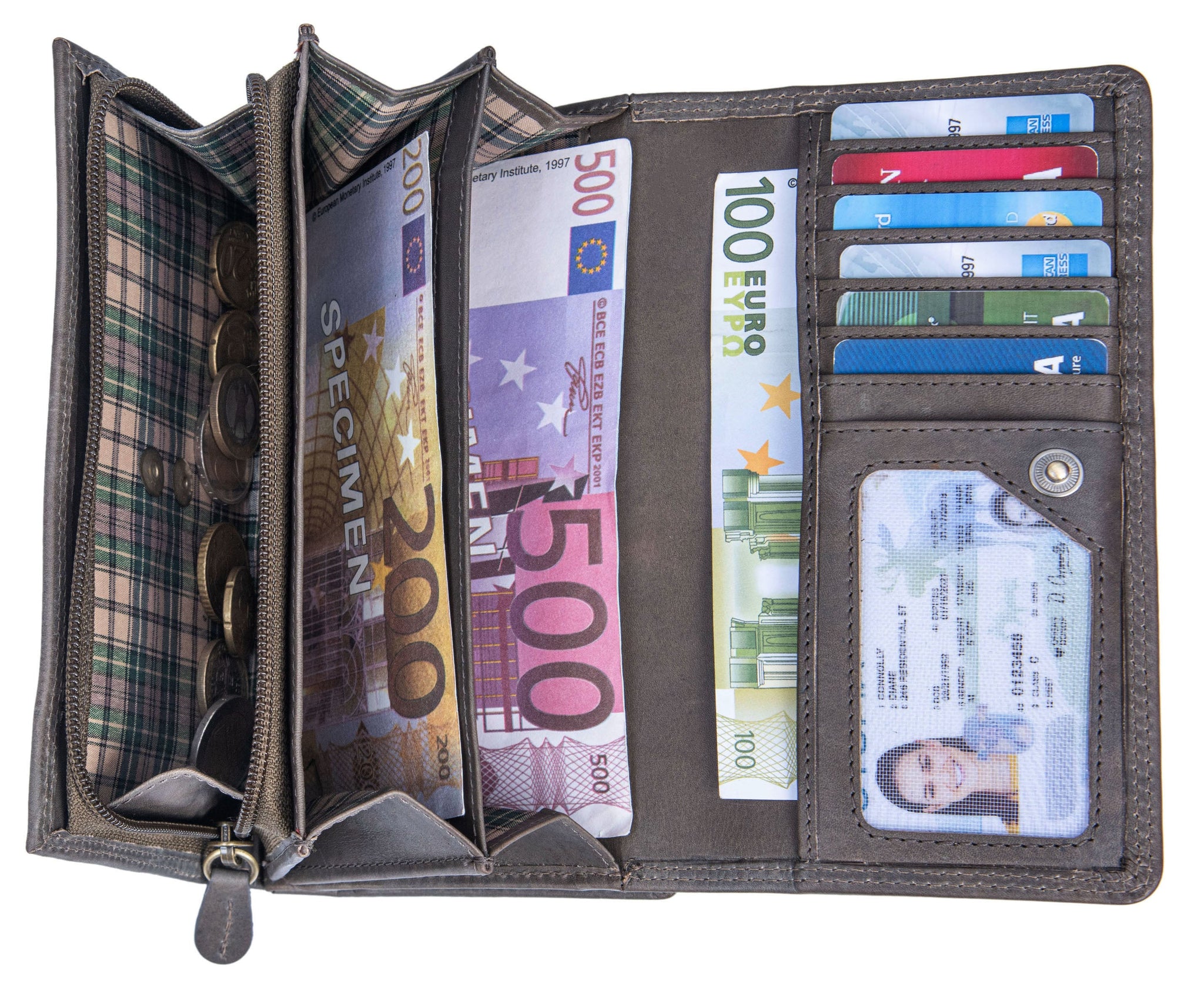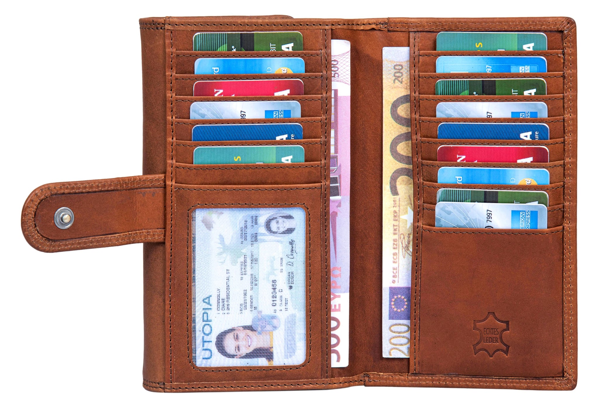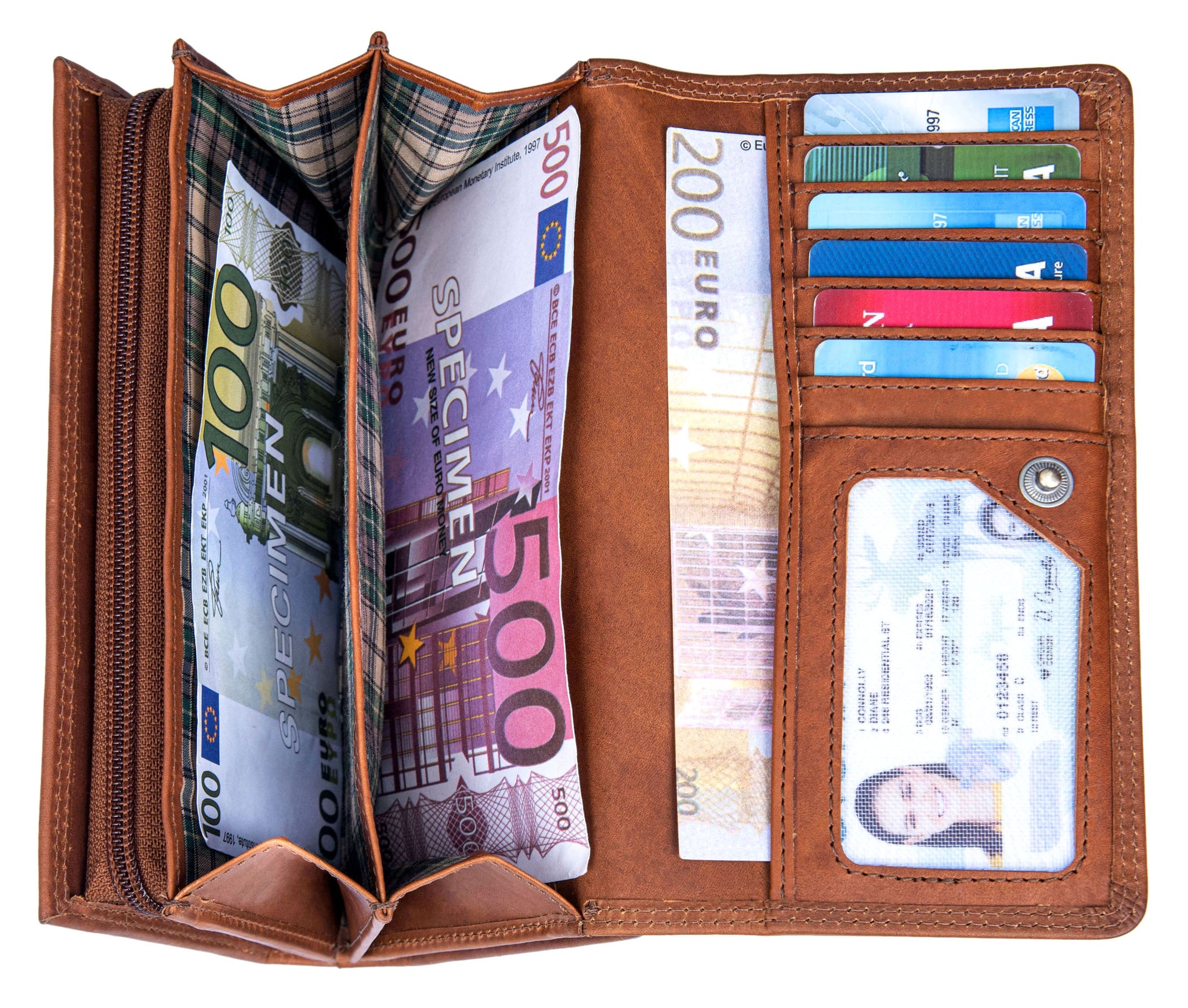 · Damen-Geldbörse - Sehr angenehmes weiches Leder, ein Tolles Material im leichten Vintage-Look. Ein echt hochwertiges Portemonnaie - durch das Langlebige Echt Leder werden Sie den unterschied fühlen. Inklusive RFID-Schutz ist die Börse sicher gegen Datenraub.
