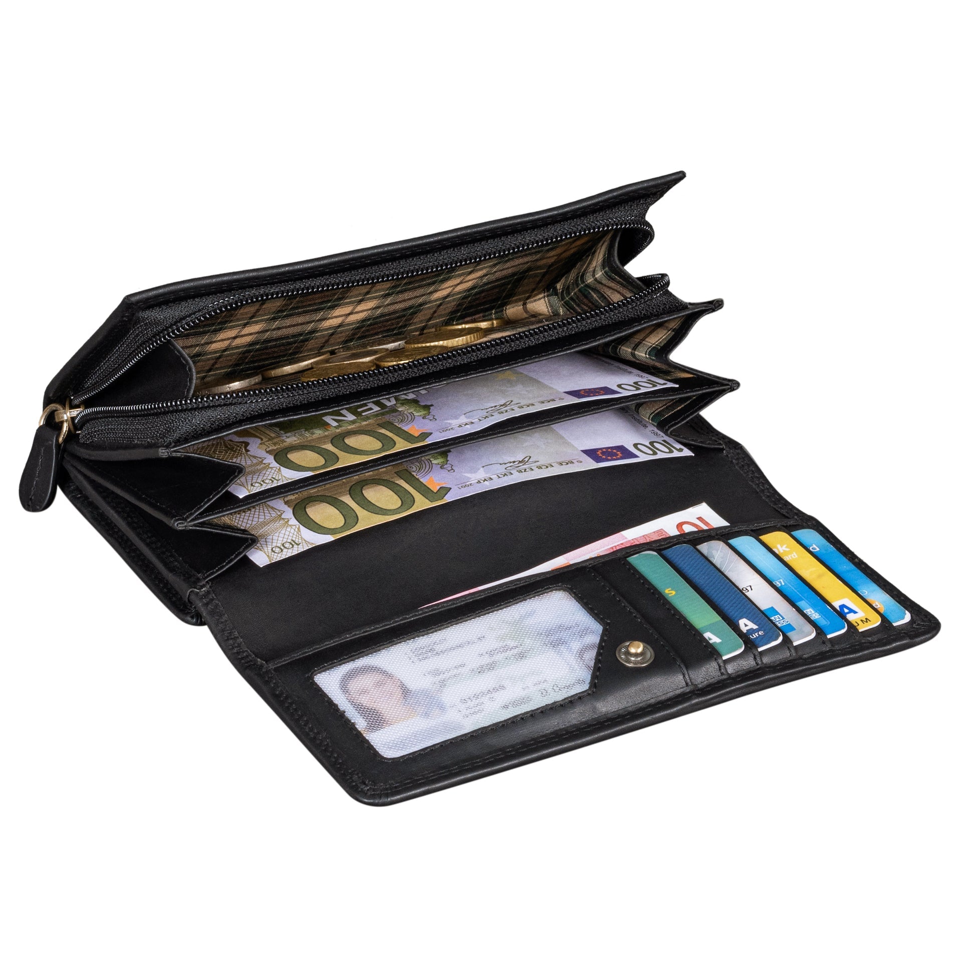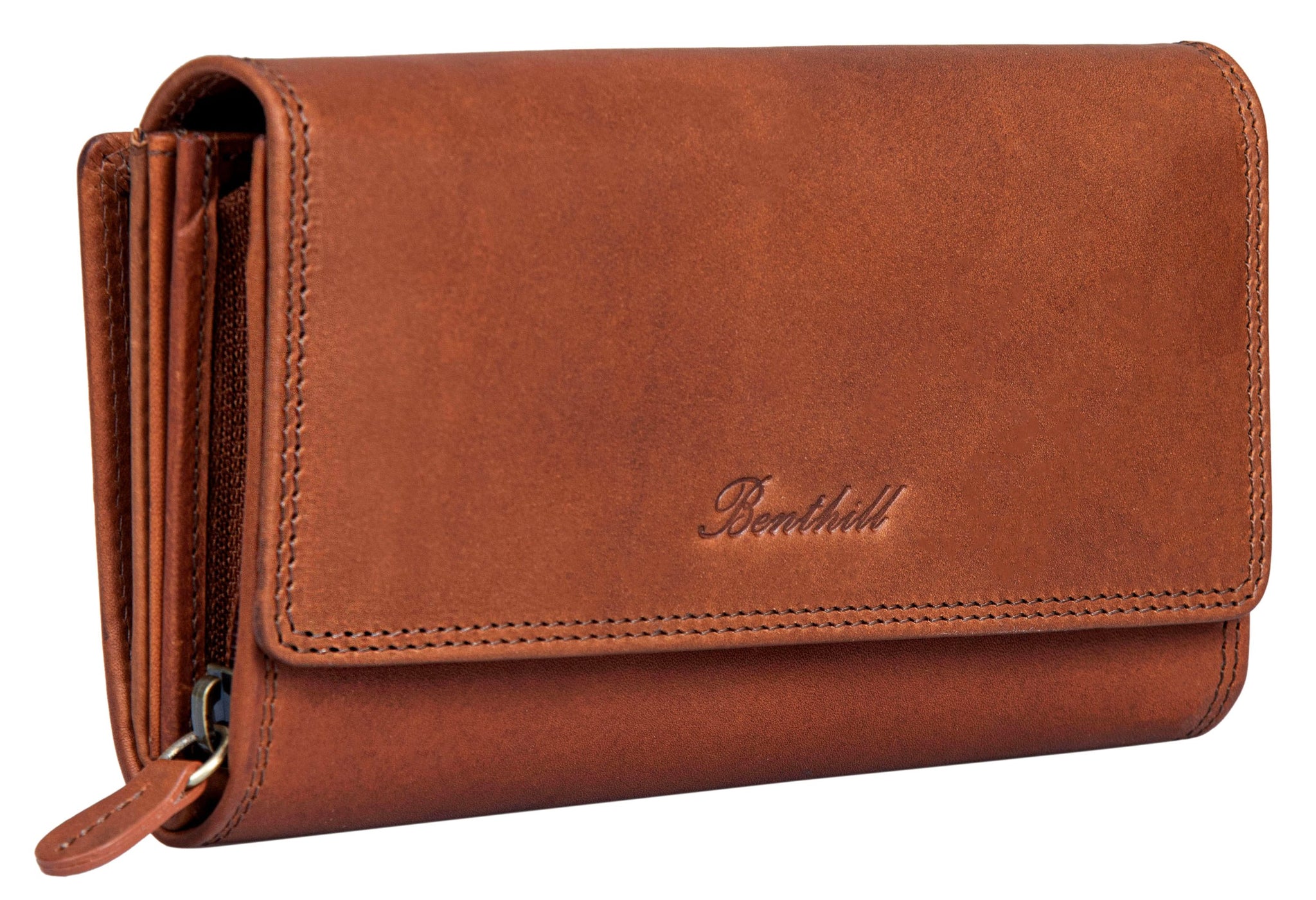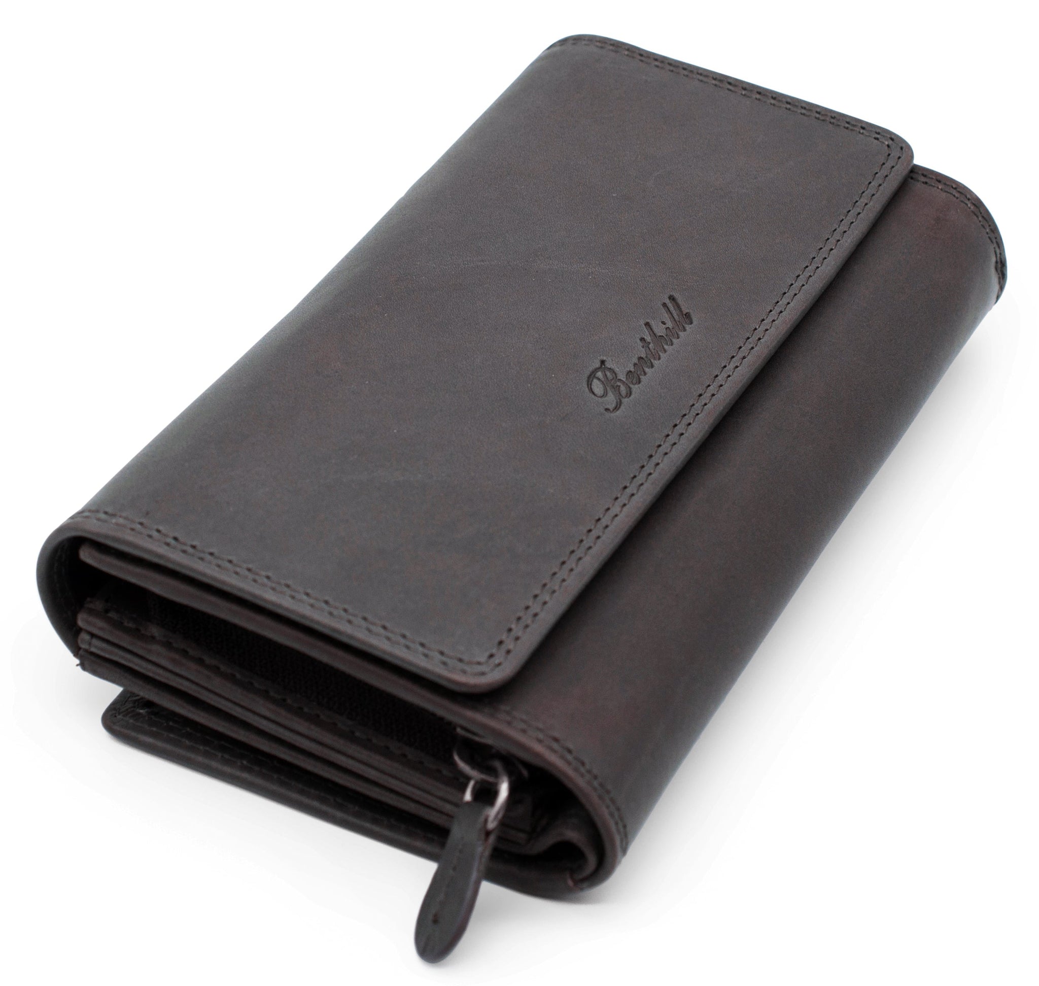 Benthill Damen Portemonnaie XXL mit RFID-Schutz | Echt-Leder Damen Geldbörse Gross | Große Vintage Damenbörse mit vielen Fächern XXL