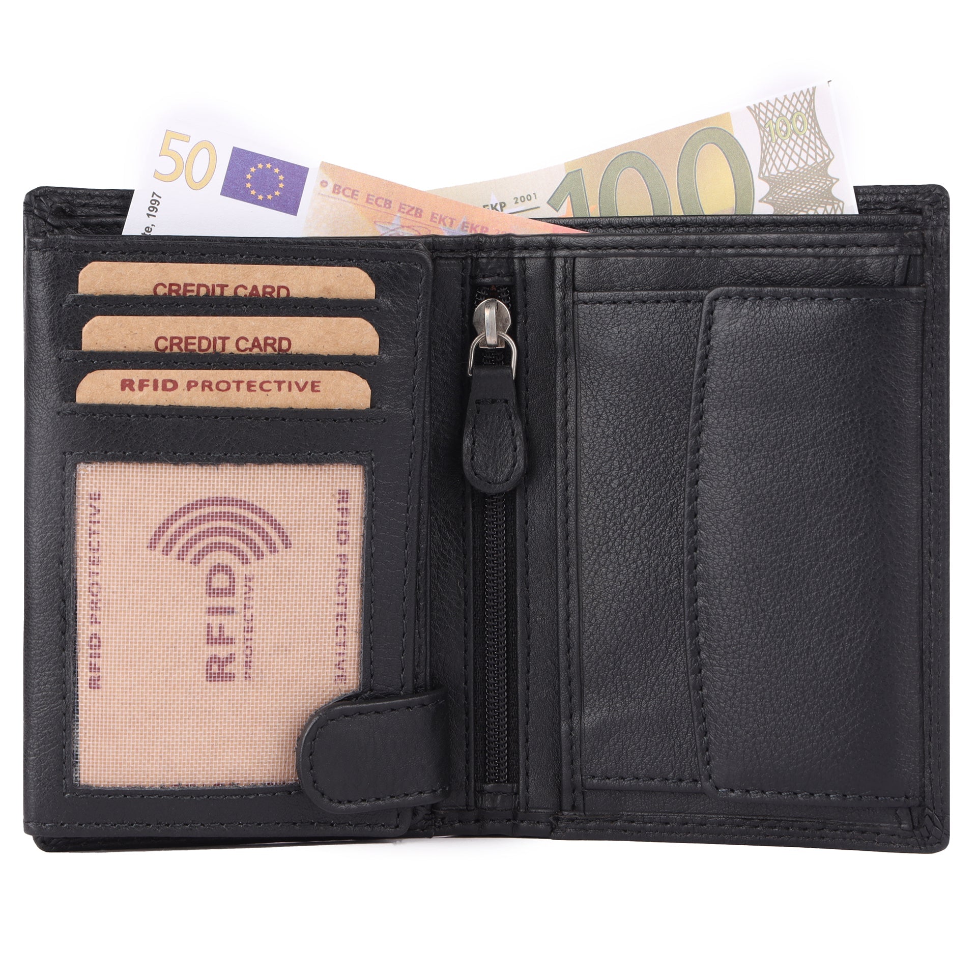 · Format - Klassisch gehaltenes Geldbörsen Format: 9.5x12x2 cm. Herrengeldbeutel im edlem Hochformat Design. Diese Große Herrengeldbörse unterstützt Sie im Alltag - durch die ganze Vielfalt an Platz und Raum.