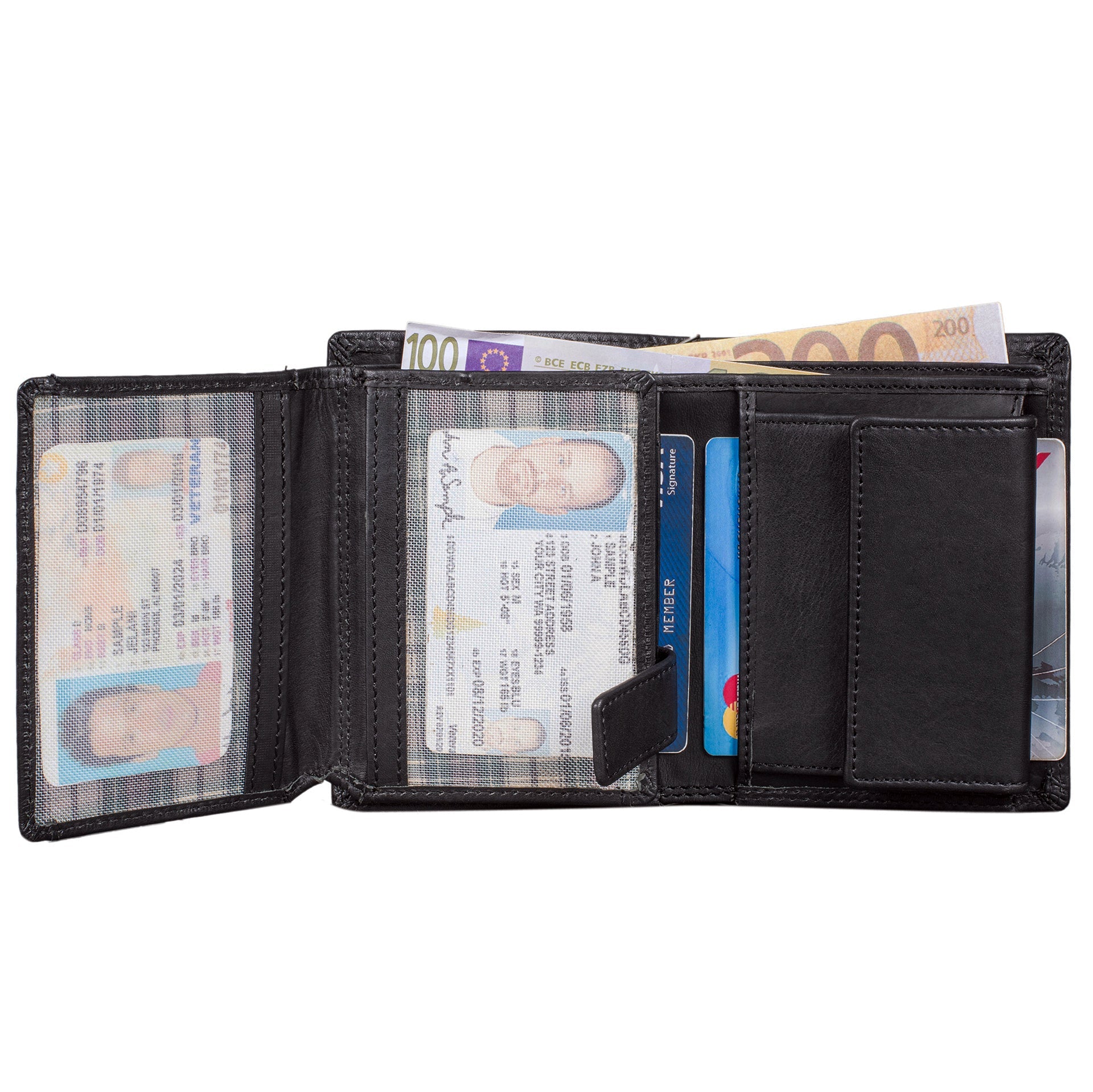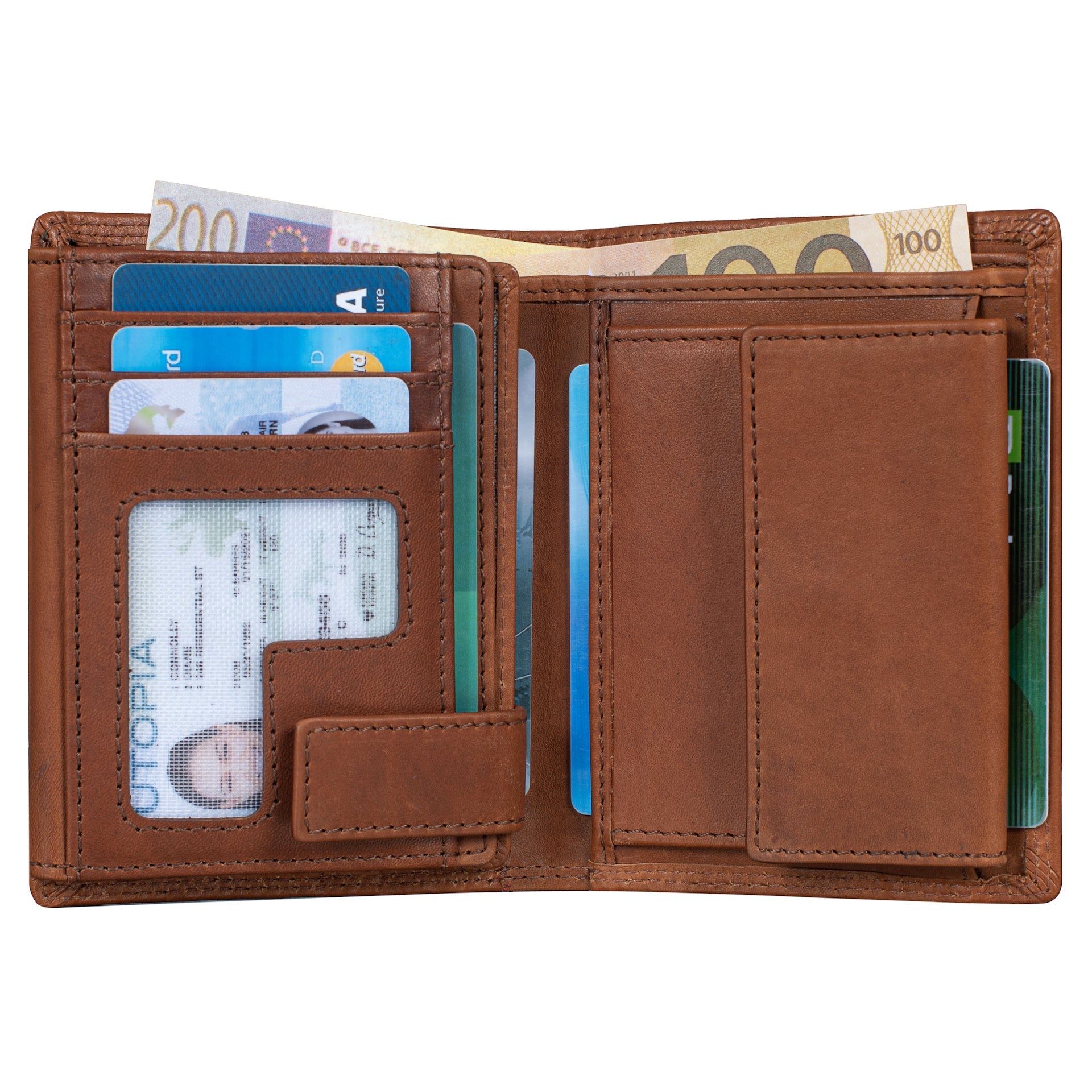 · Format - Klassisch gehaltenes Geldbörsen Format: 10x12.5x3 cm. Herrengeldbeutel im edlem Hochformat Design. Diese Große Herrengeldbörse unterstützt Sie im Alltag - durch die ganze Vielfalt an Platz und Raum.