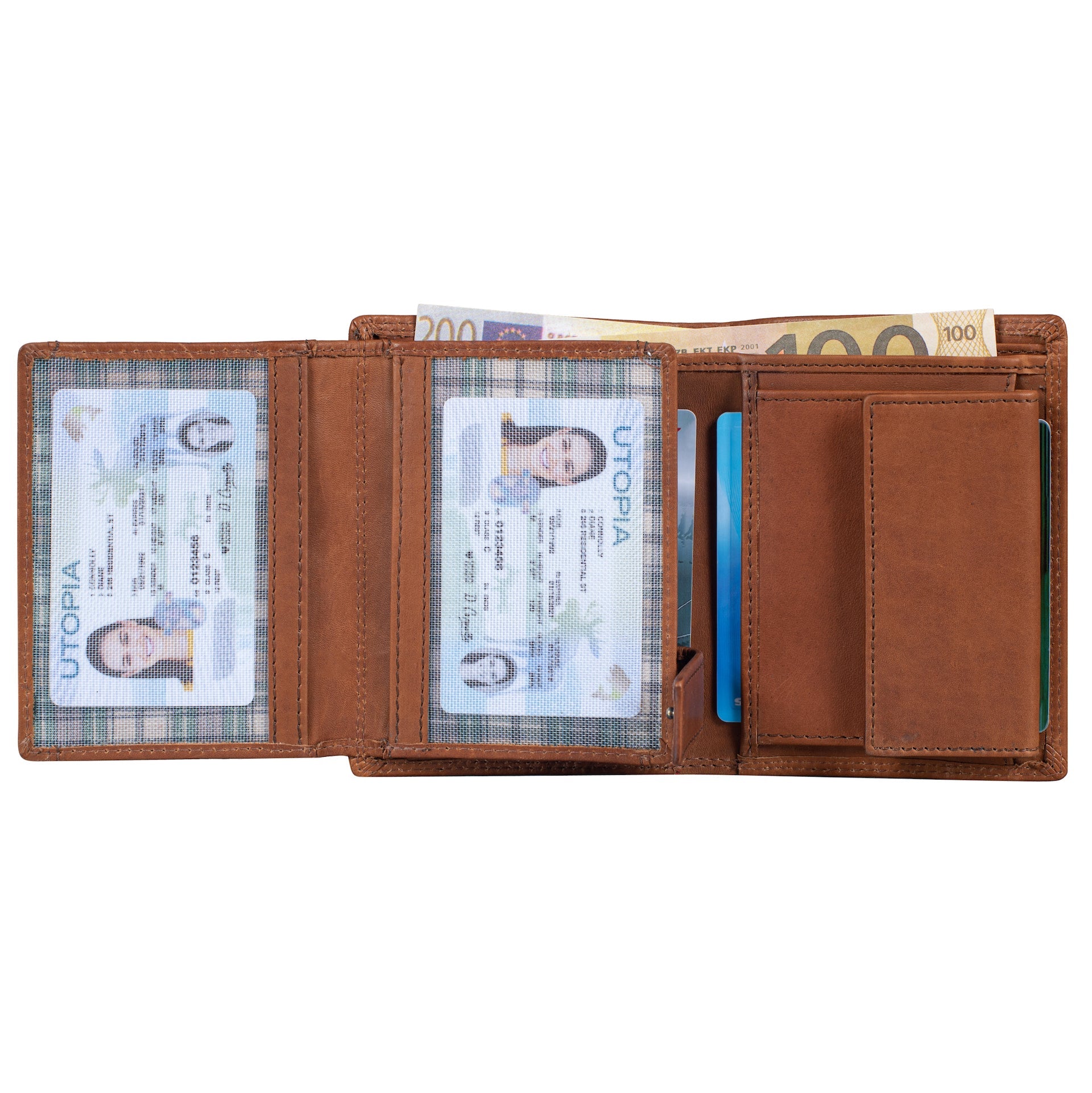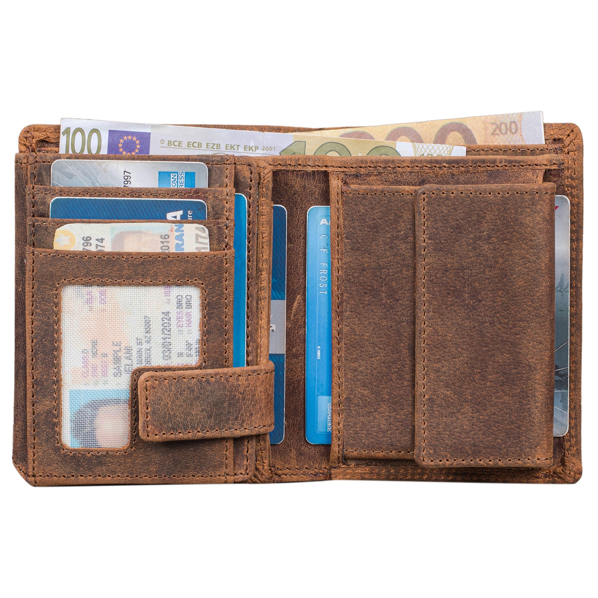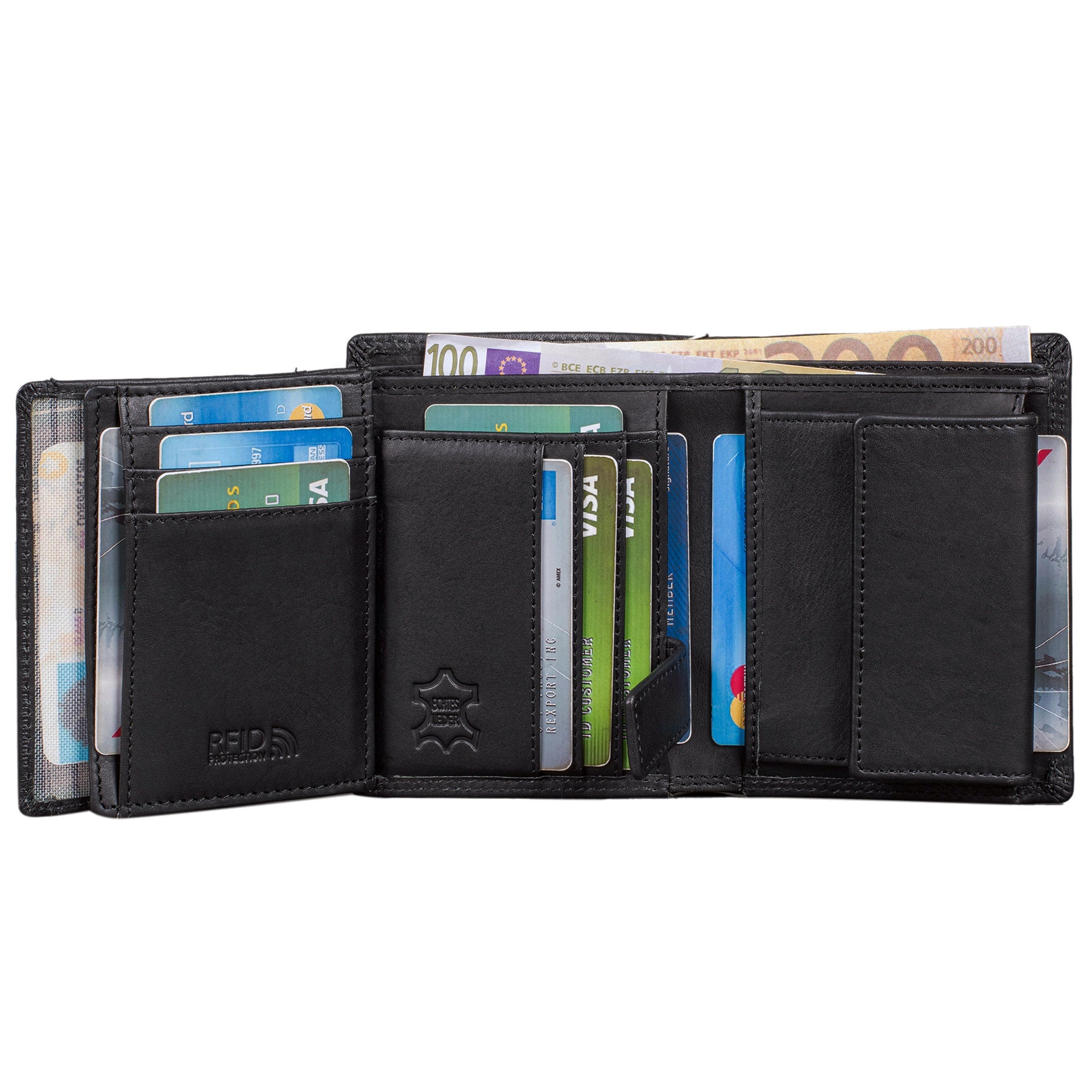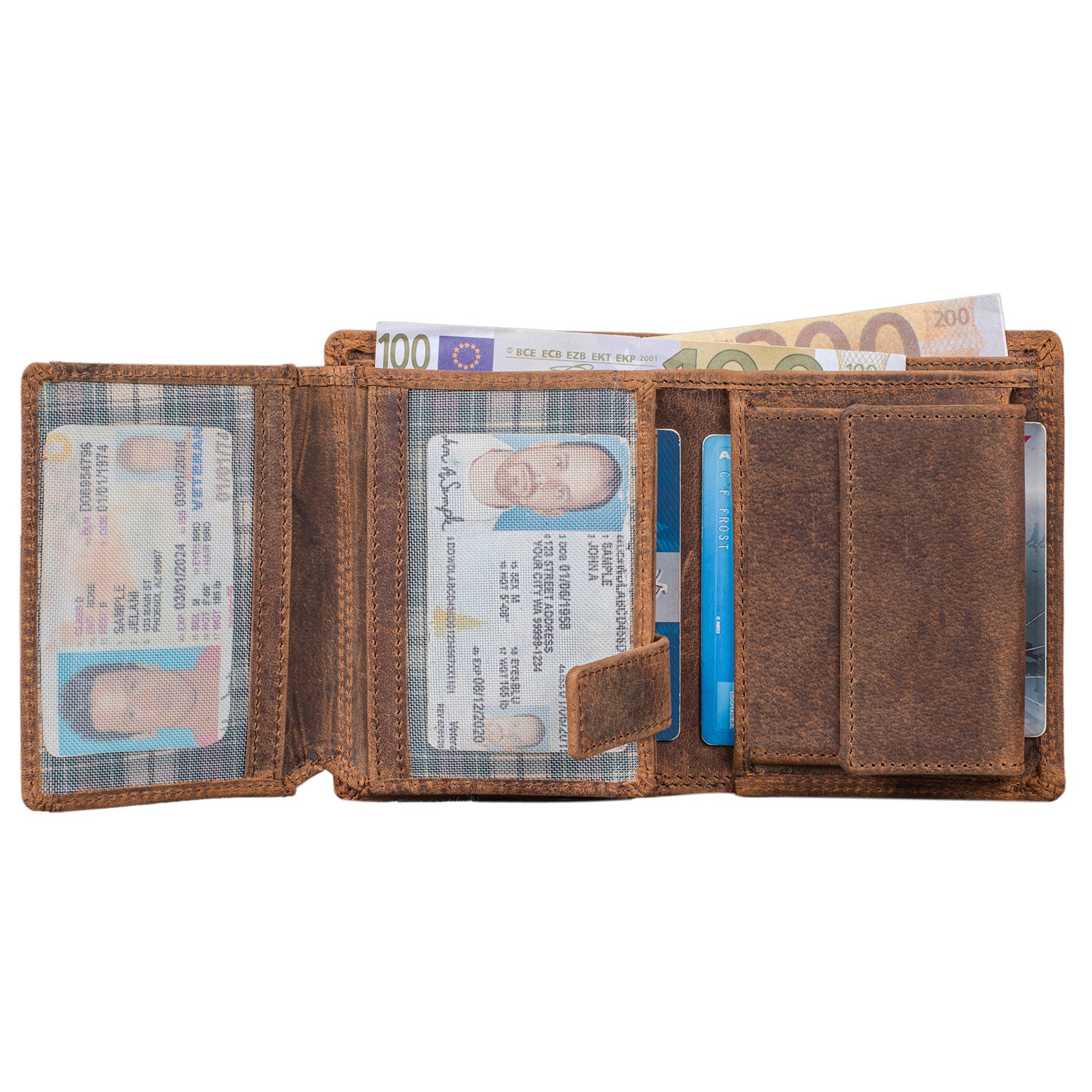 · Herren-Geldbörse - Sehr angenehmes weiches Leder, ein Tolles Material im leichten Vintage-Look. Ein echt hochwertiges Portemonnaie - durch das Langlebige Echt Leder werden Sie den unterschied fühlen. Inklusive RFID-Schutz ist die Börse sicher gegen Datenraub.