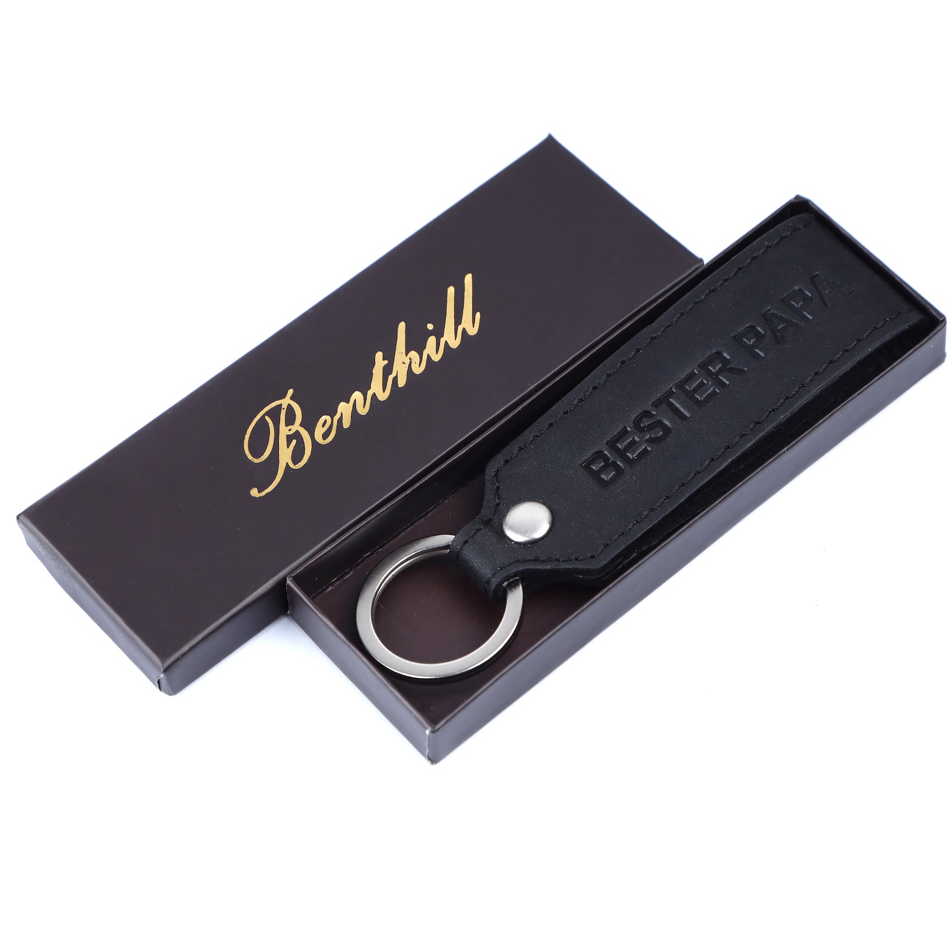 Benthill Schlüsselanhänger Echt Leder mit Bester Papa Gravur | Geschenk für Papa | Vatertagsgeschenk - Schlüsselbund inkl. Geschenkbox